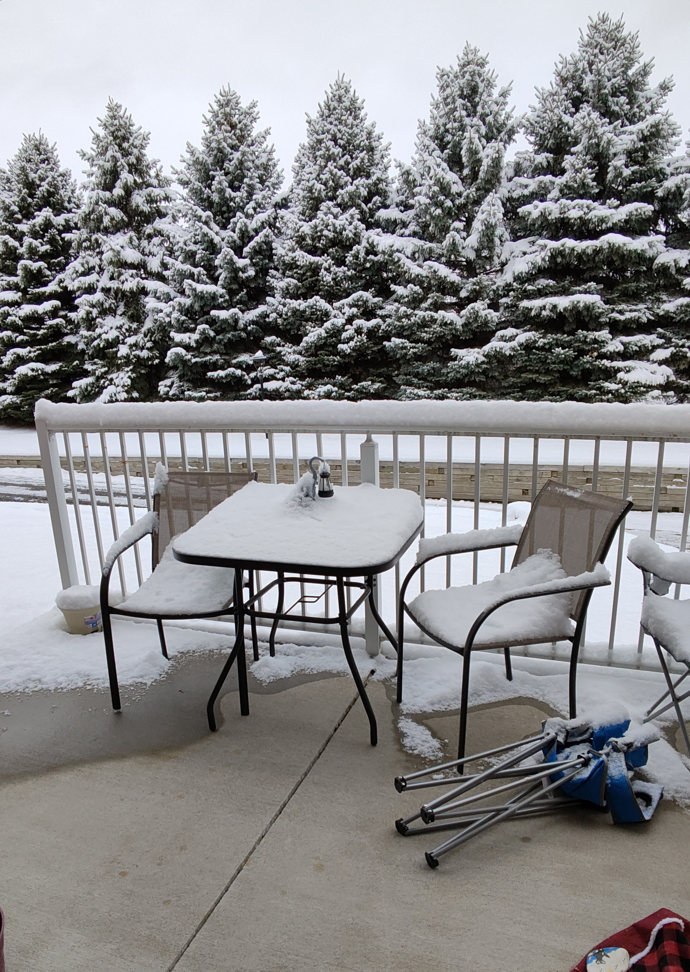 The weather will cooperate today with temps no higher then 26 F. The bitter cold happens tomorrow. Right now it's 15 F and feels like 12 F. Looking at the patio, the flag on my table is barely moving, so not much wind, perfect.