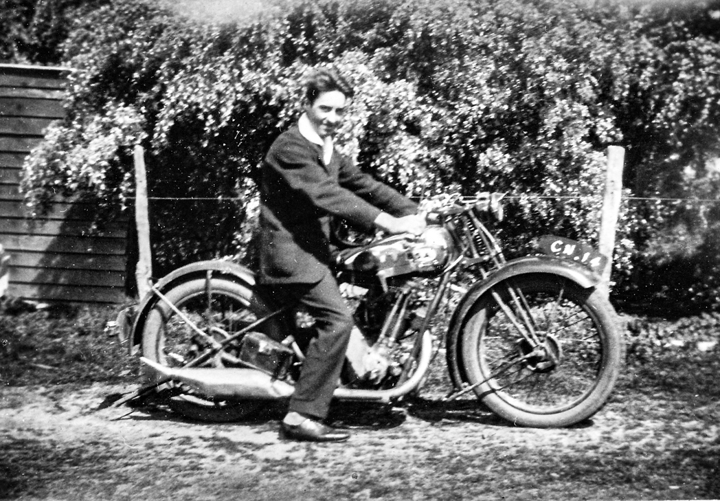 The photo is mine, showing my Dad on his motor-bike. He courted my Mum on this bike.