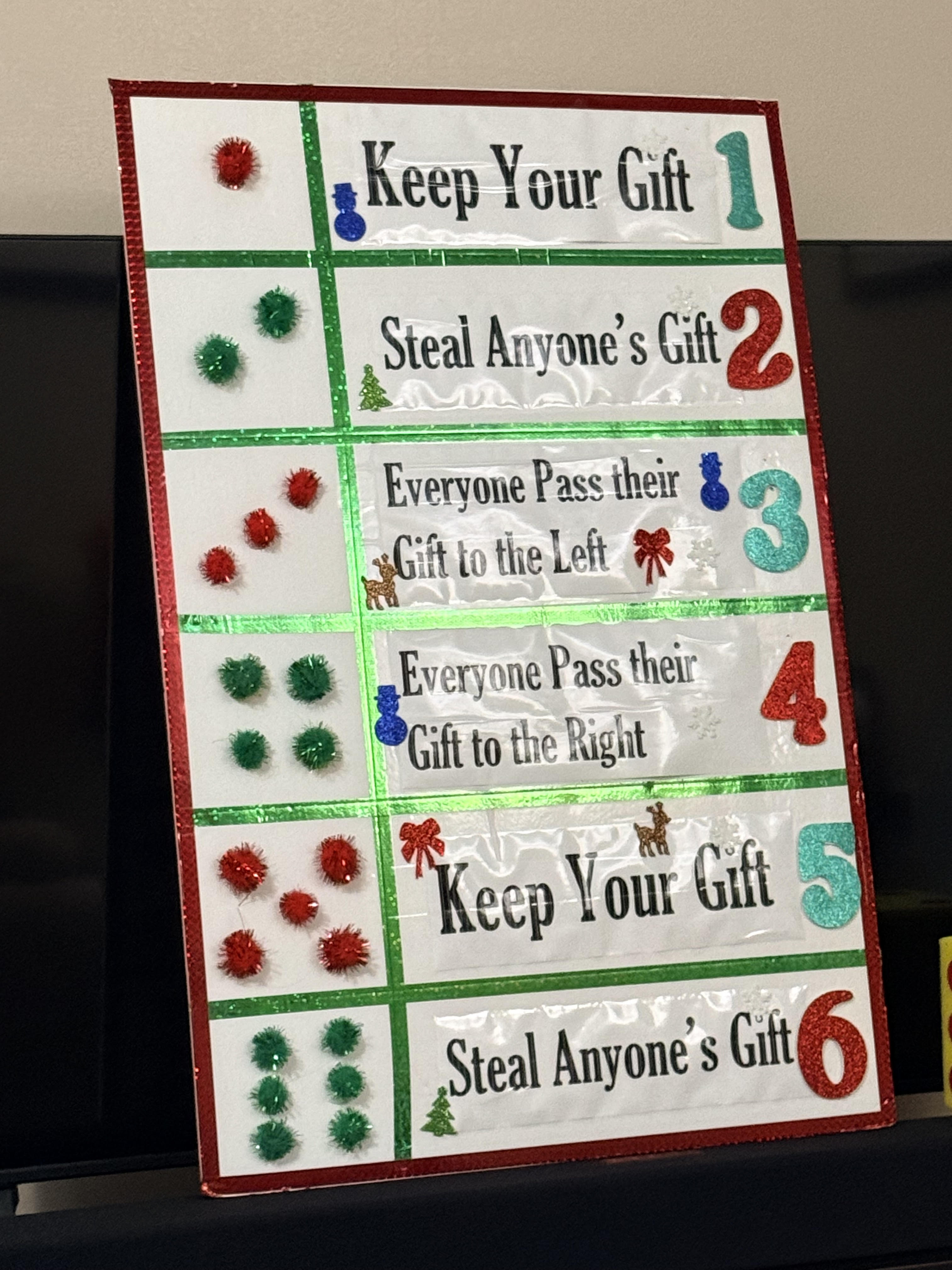 Some people call this game "Dirty Santa" or "White Elephant" game but we play with nice gifts, not prank or trashy gifts.