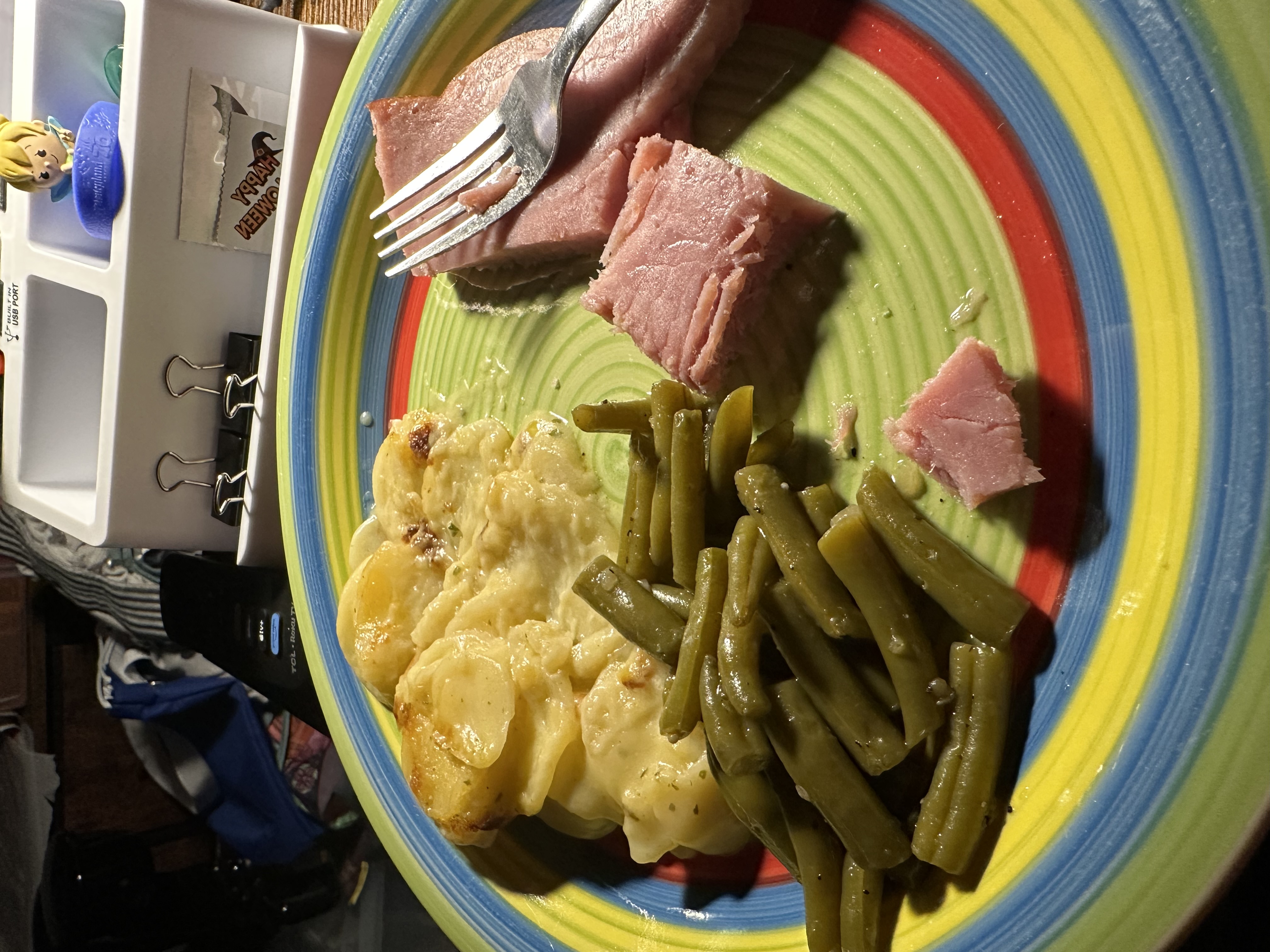 I fixed tonight for me a smoked ham steak, scalloped potatoes and green beans!