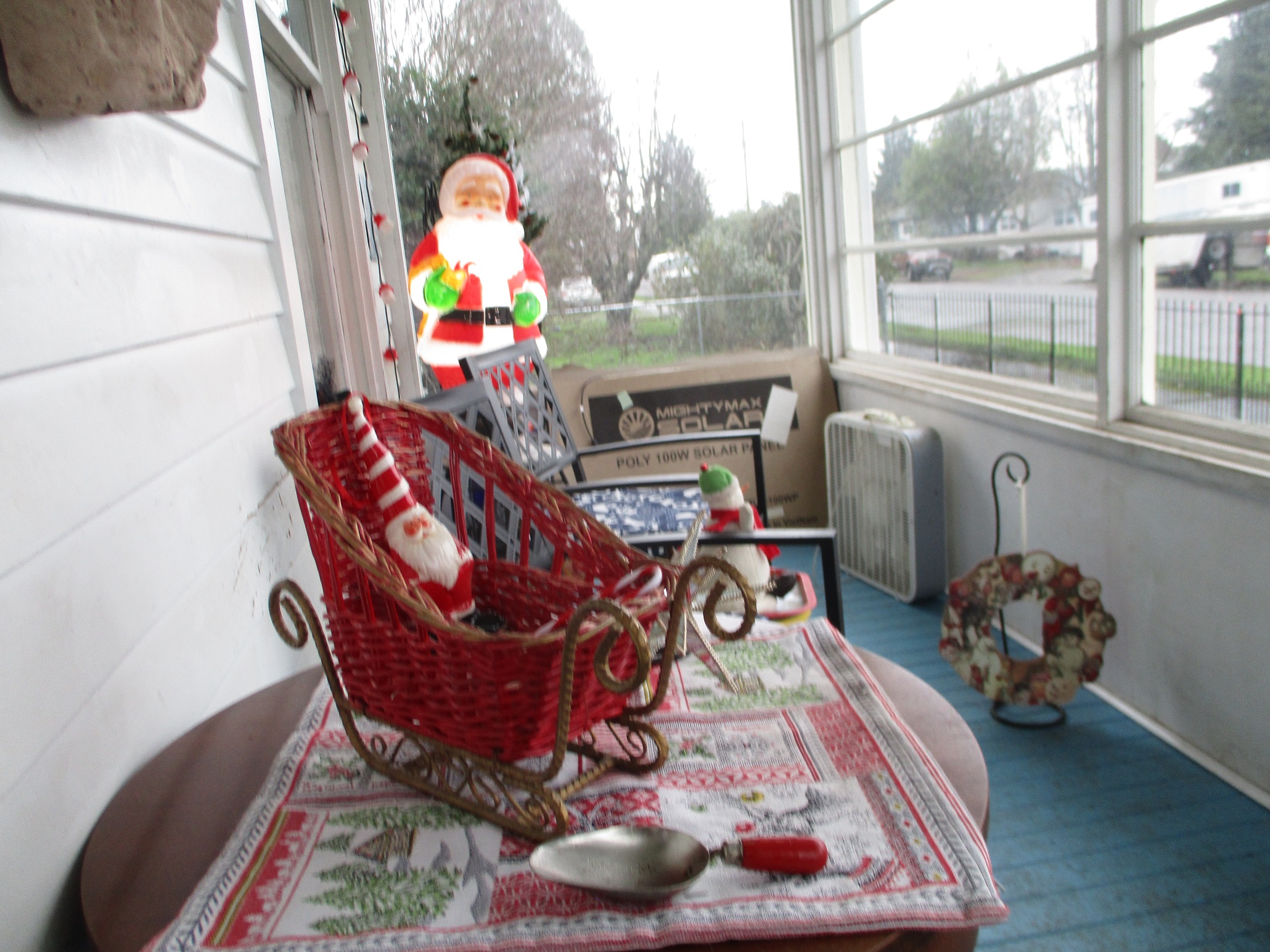 The photo should show my front porch. Pretty soon Santa will have to go back to his napping place either in the back laundry room or the little closet that sits off my office.