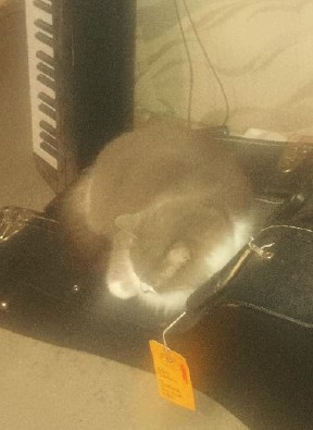 Kitty enslaved me about five years ago. Her new favorite place to sleep (which is what she does best) is atop my guitar cases. I think she likes music.But her specialty is sleeping.