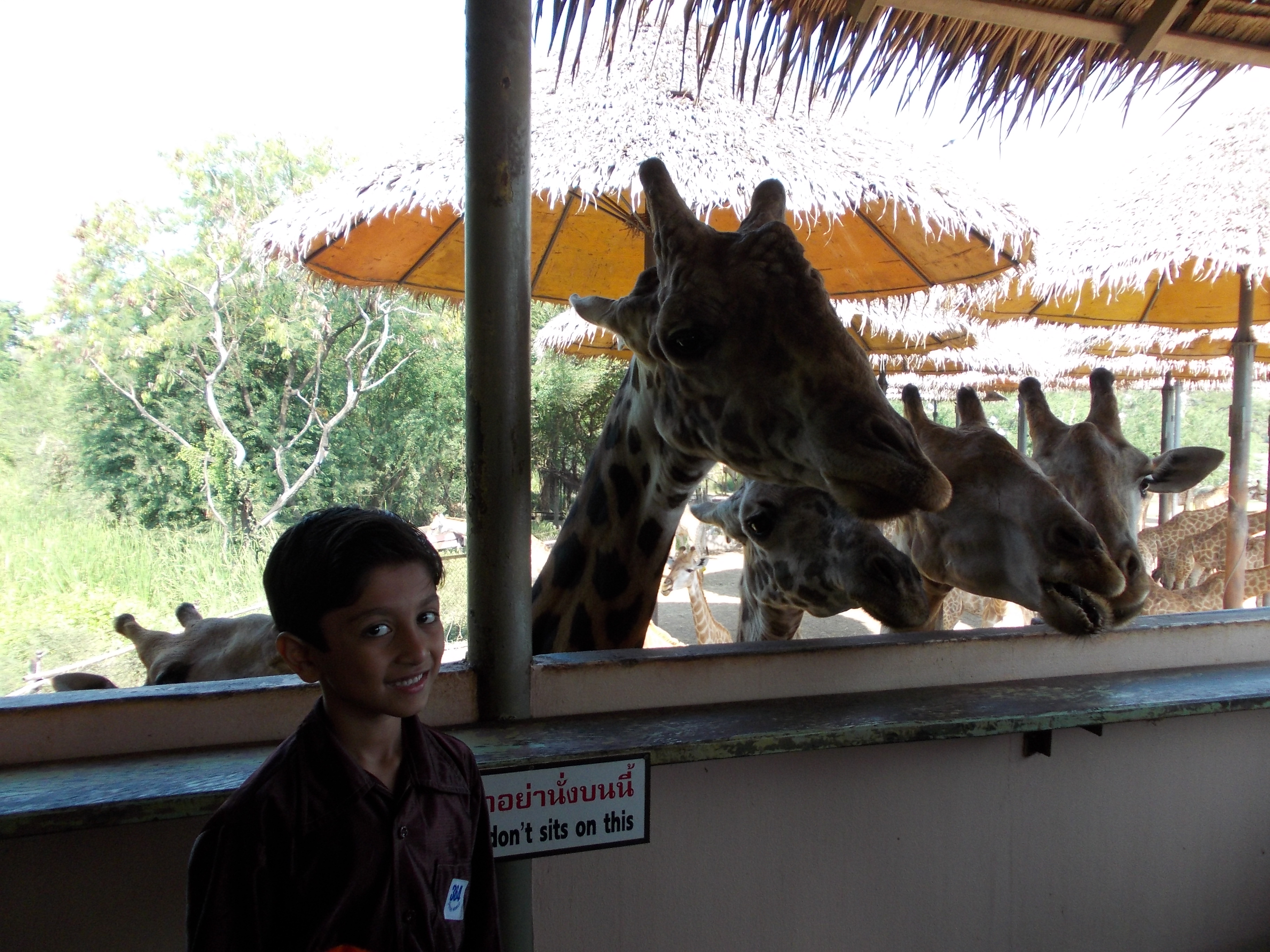 Giraffes are so tall that with their protruded neck they can reach 2nd floor. In Safari World, Bangkok, Thailand travellers are allowed to buy the leaves and feed the giraffes from a great height, the 2nd floor. The giraffes enjoy the leaves and approach the travellers. They have superiority relating to their height.