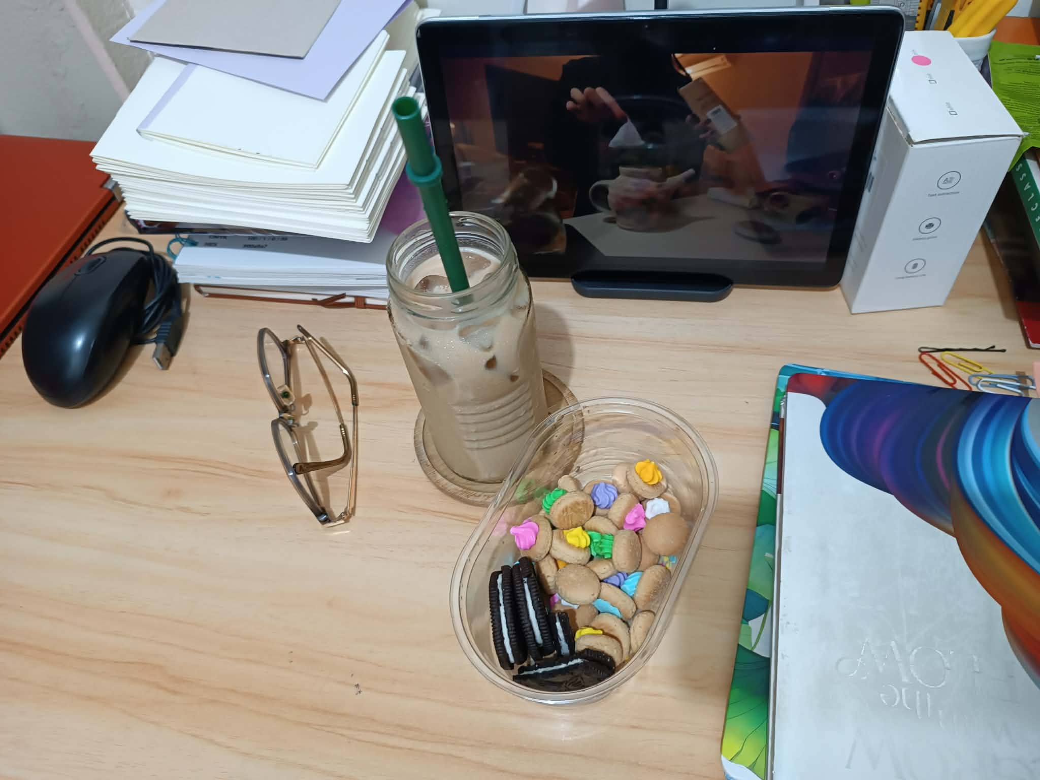 What's in the photo was a snacks I prepared, iced gem and oreo.