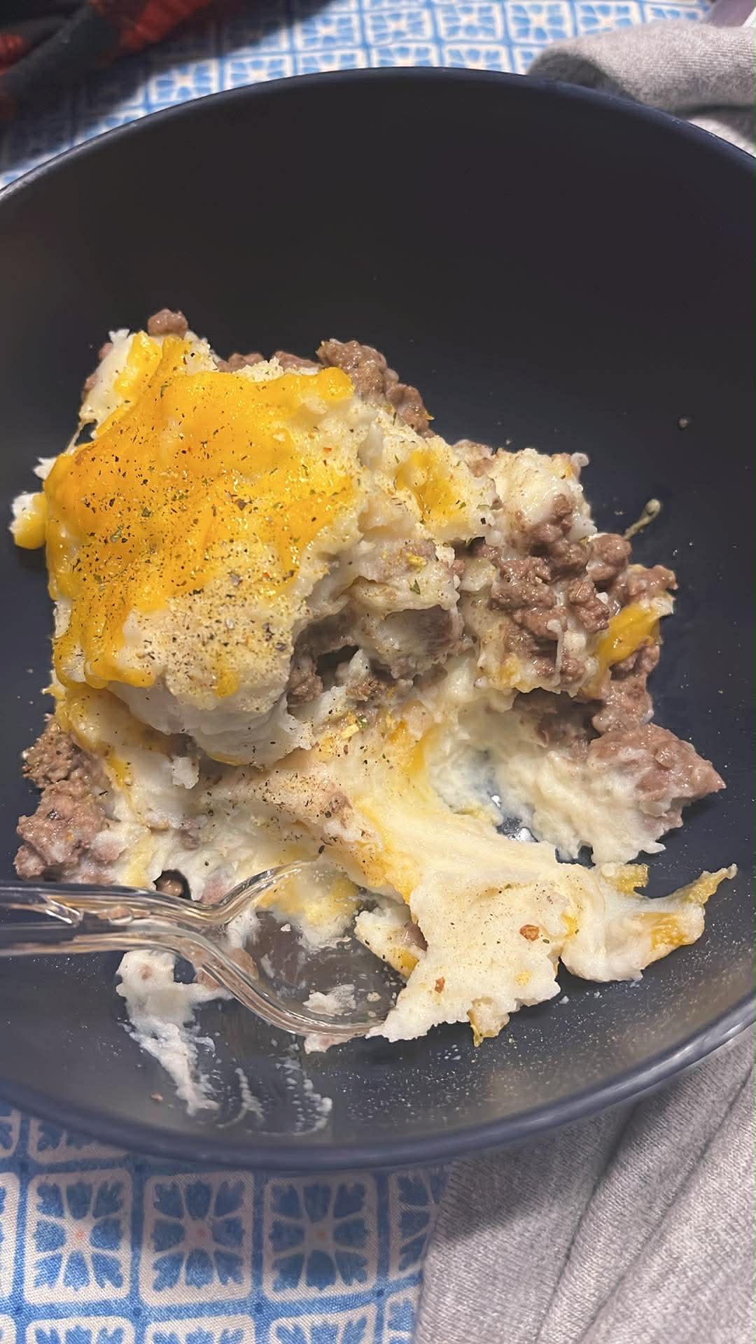 Tonight was an easy dinner kind of night. I stopped at Dollar General Market on the way back from town and grabbed ground beef, potatoes, and cheese so I could throw together a shepherd’s pie.
