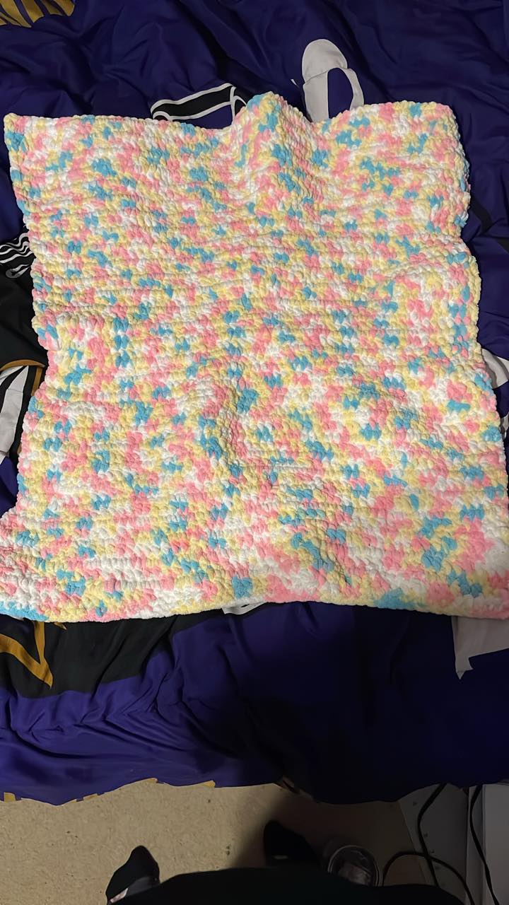 I started a baby blanket for a friend who is having a baby girl this year and I finally finished it.