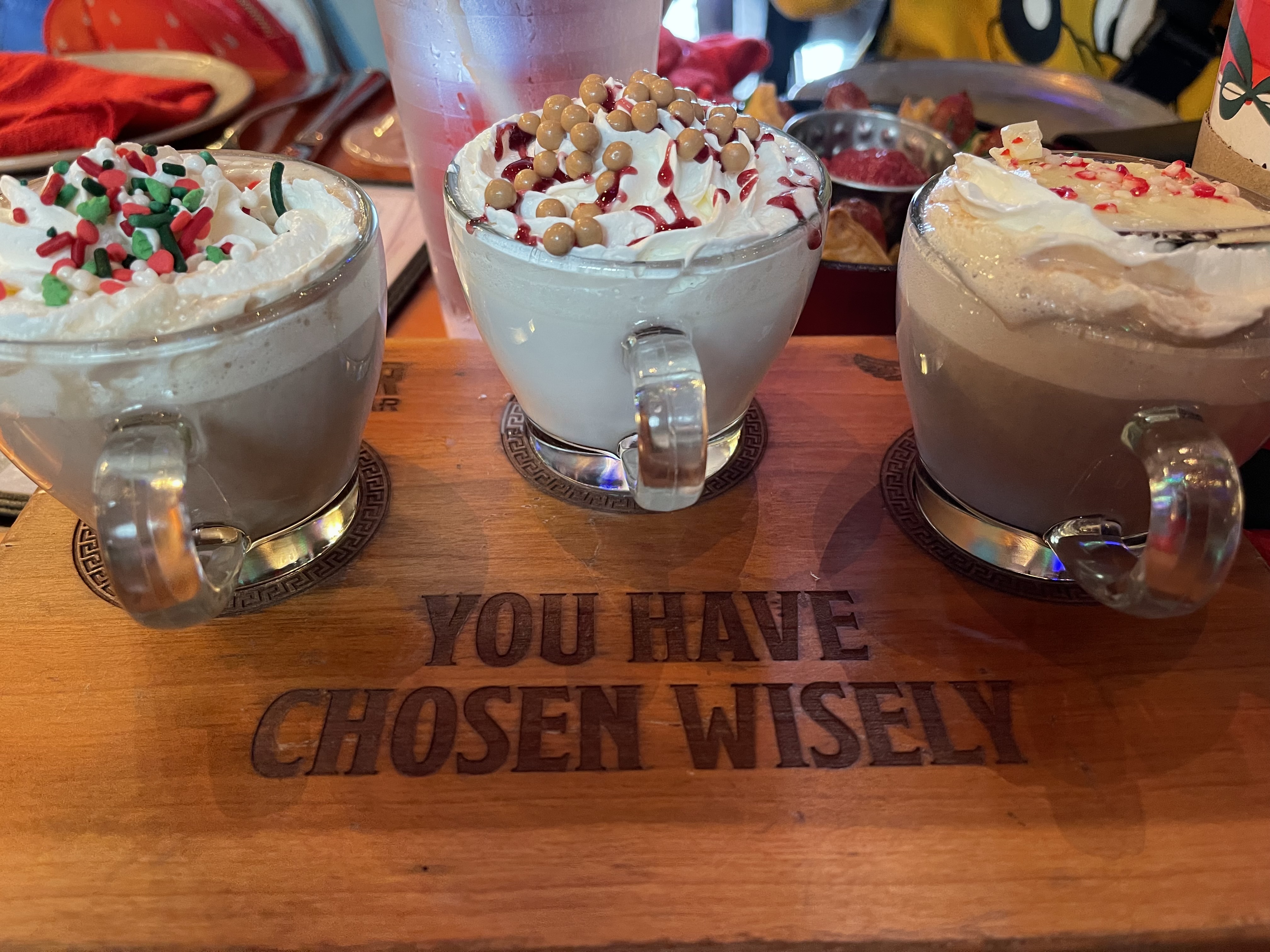 Just over a week ago, when my family was on vacation at Walt Disney World in Orlando, Florida, we spent our final day of the trip visiting Disney Springs, a large shopping, dining and entertainment district on the Walt Disney World resort property (think very large outdoor mall). While we were walking around, we passed a bar called the Hangar Bar, a quaint little place with WWII aviation vibes. What drew us in was a sign out front that was still promoting a lot of their Christmas specials, and so we decided to enjoy one last Christmas flare before we ended the trip.
