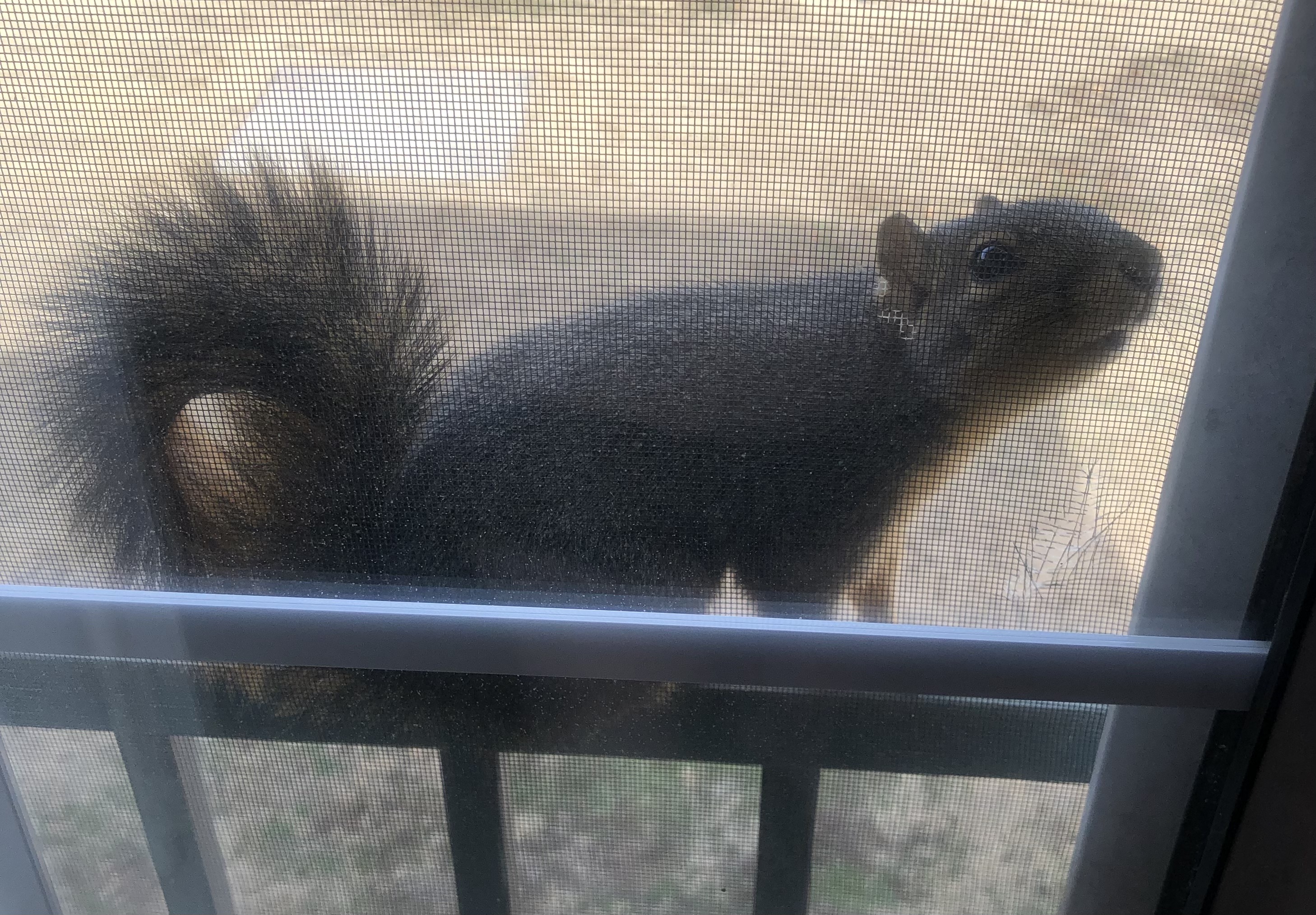 I’m on the third floor. For the past couple hours this squirrel has been going back and forth across my Juliet balcony. I normally only see birds stop up here on my “balcony”. I’m wondering if that squirrel is not sure how to get down. It goes back and forth, chirps/barks up a storm, and then moves to jump, but doesn’t. I took the dog out for a long walk, and it’s still here. But if it got up here, I guess it can get back down.