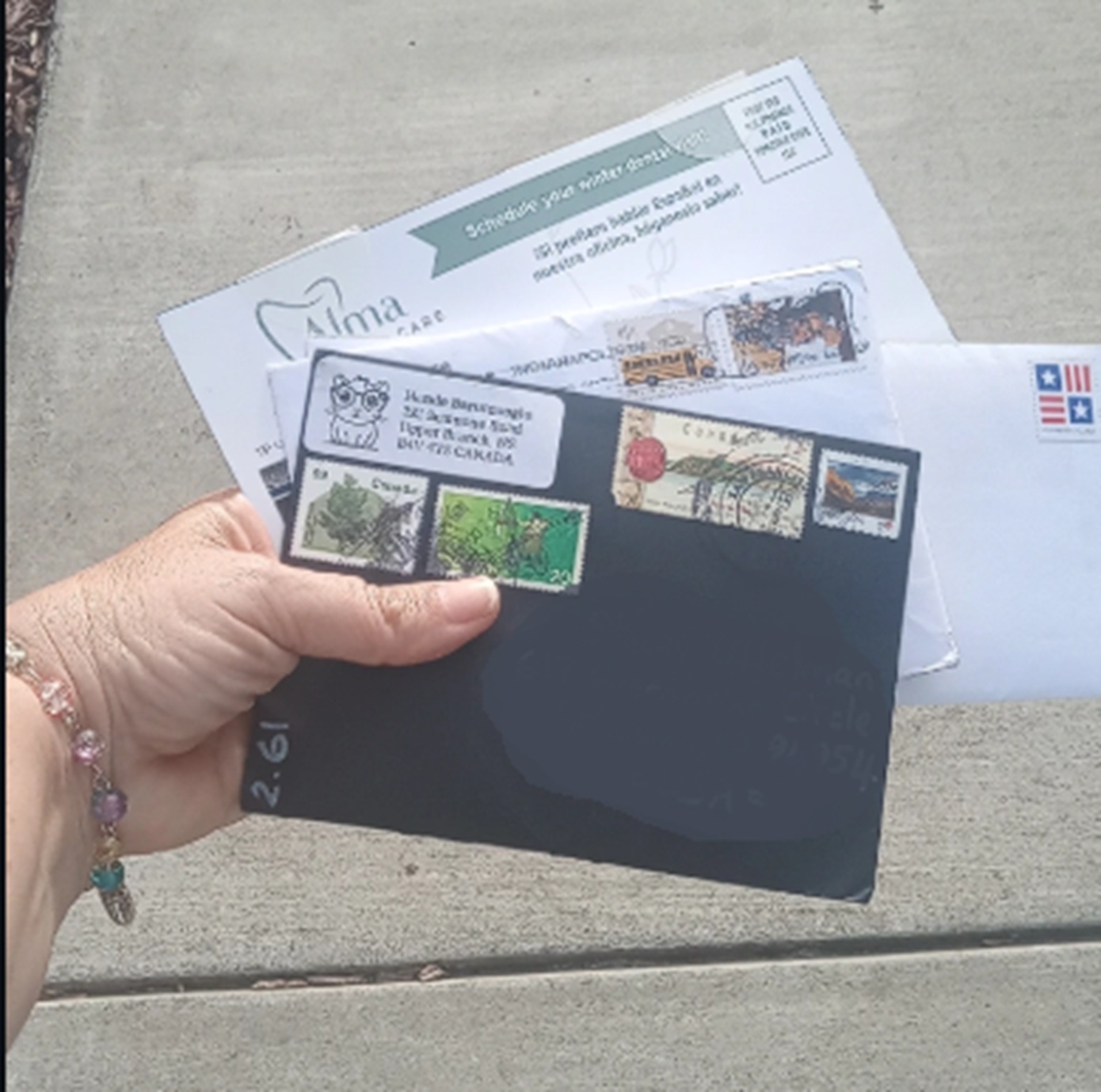 I went to the gym for half an hour, and then walked a long way to my mailbox. I received an ad for a dentist, and two envelopes of stuff from people in the Exchange slip group I belong to. Not too bad.