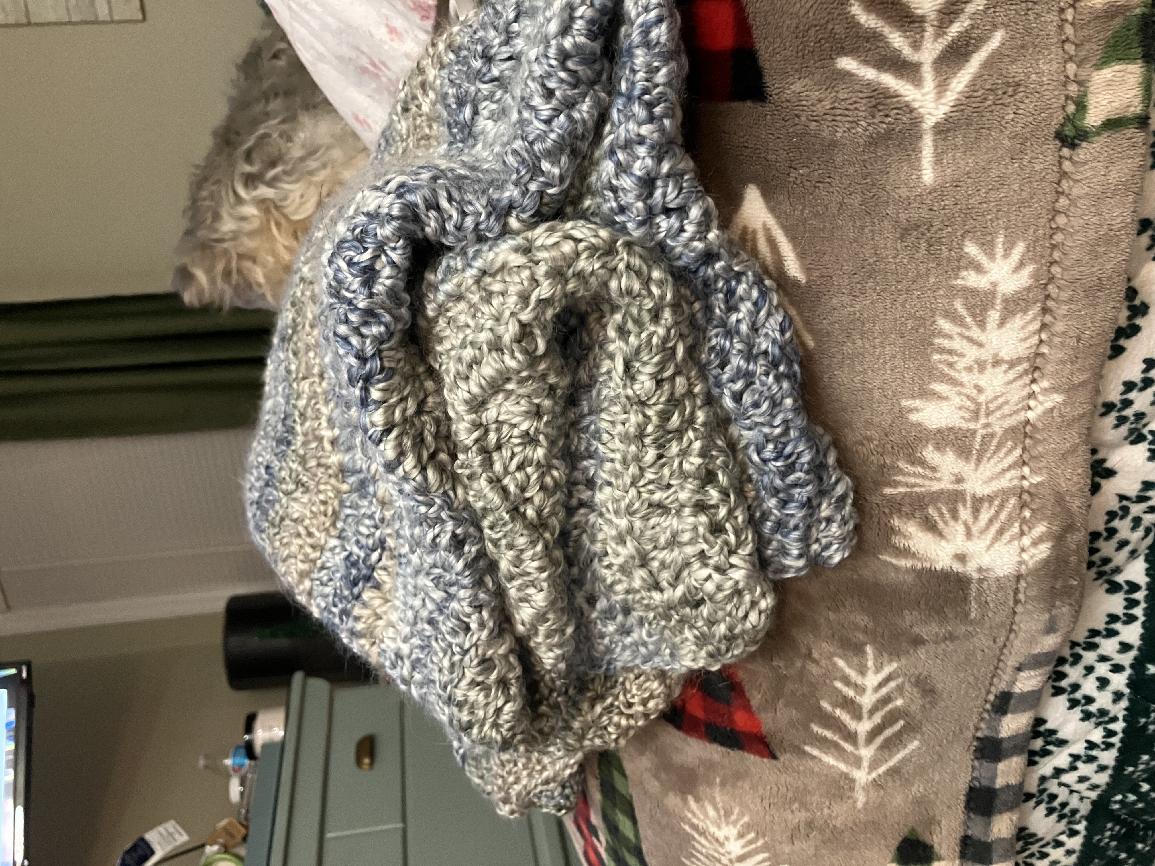 This isn't that he feels entitled, he is a very sentimental guy and he loved his blanket. When I first heard, I got excited and ordered the yarn and some new crochet hooks. Well it sat in a container for a couple months and then the shower and Christmas and then my grief hit again.