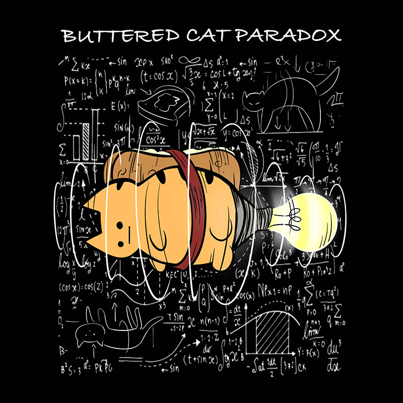 The author therefore suggested that if a slice of buttered toast was strapped to the back of a cat and the cat was dropped from a sufficient height to allow rotation, the cat would rotate to be feet-down, but then this effect would be counteracted by the toast which would exert an opposing force in order to land butter-side-down.
