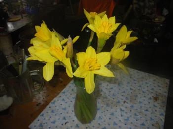 I love that flower and the color. I let my husband make all the monetary decisions because we never had too much, When I said I wanted something that we could not really afford, he took his wallet and handed it to me and said you want to take over?" and I always apologized and said I would go by his wishes. However, there were times when he would surprise me by saying I could buy something I really wanted. Here is the last bunch of daffodils he tole me to pick ou on our last Easter together.