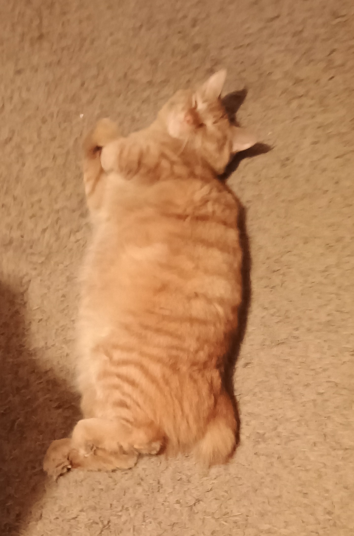 . We have to watch for him when we are walking as he blends in with the carpet as you can see.