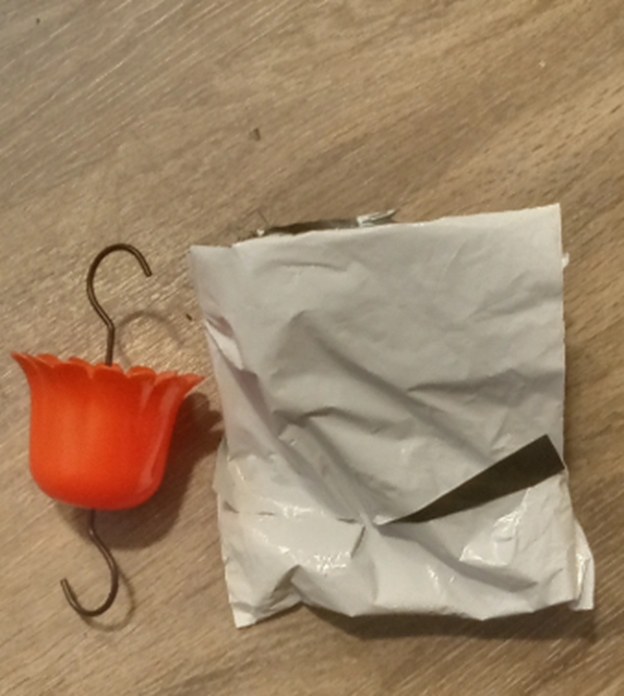 Last night when I came home from church, there was a package at my door. I opened it this morning, and it was a hummingbird feeder moat that I forgot that I bought. I was thinking it was something else. Tonight or tomorrow I'm going to have to go and get my mail out of my mailbox.