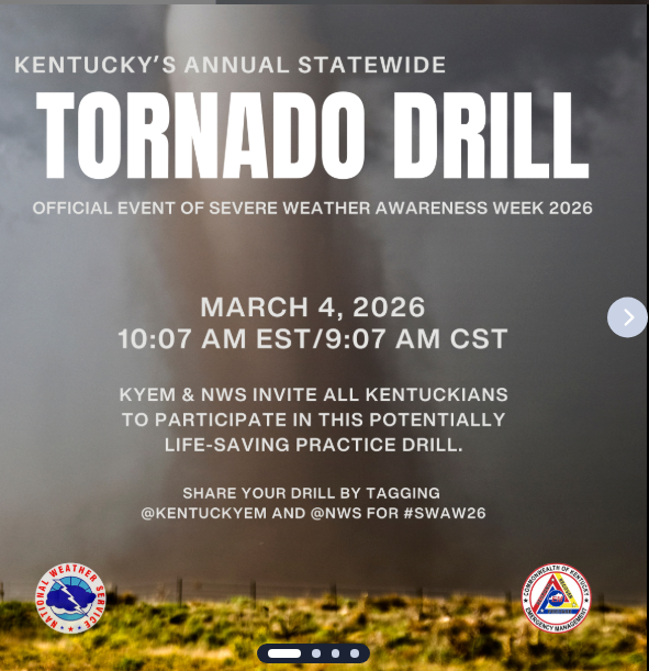 Tuesday is our annual Tornado Drill for the whole state to make sure the sirens are working properly.