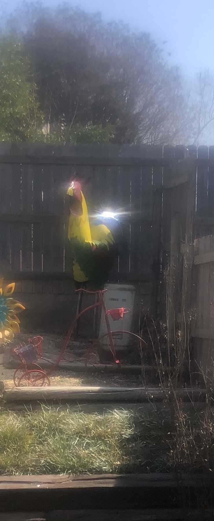 *Pictured is a six foot chicken my dad found for my stepmom to put in their backyard. His grandkids love it, and so did Diana!