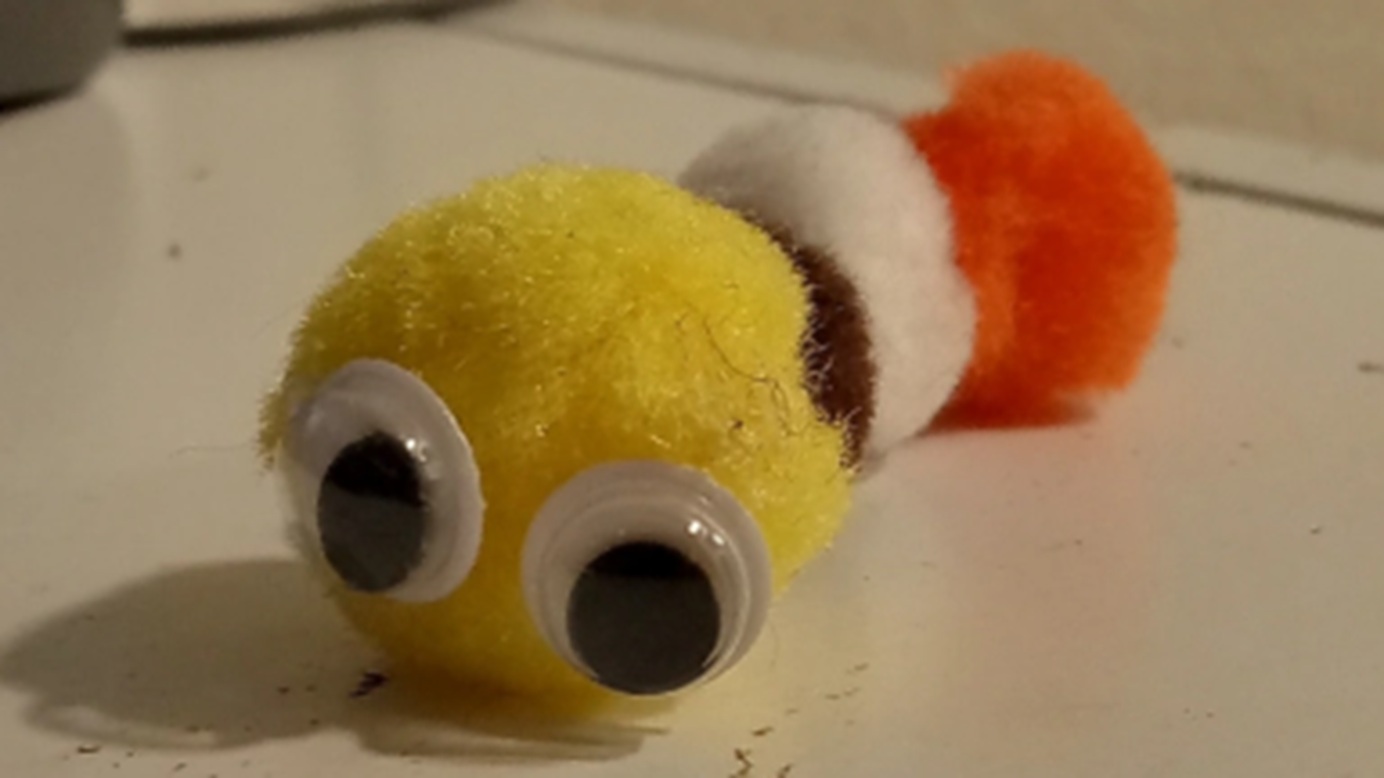 The little caterpillar in the picture was from a project one of the teachers did with the kids. There were pom poms at the table with no paper leaf to glue them onto (also part of the project) so I made one myself.