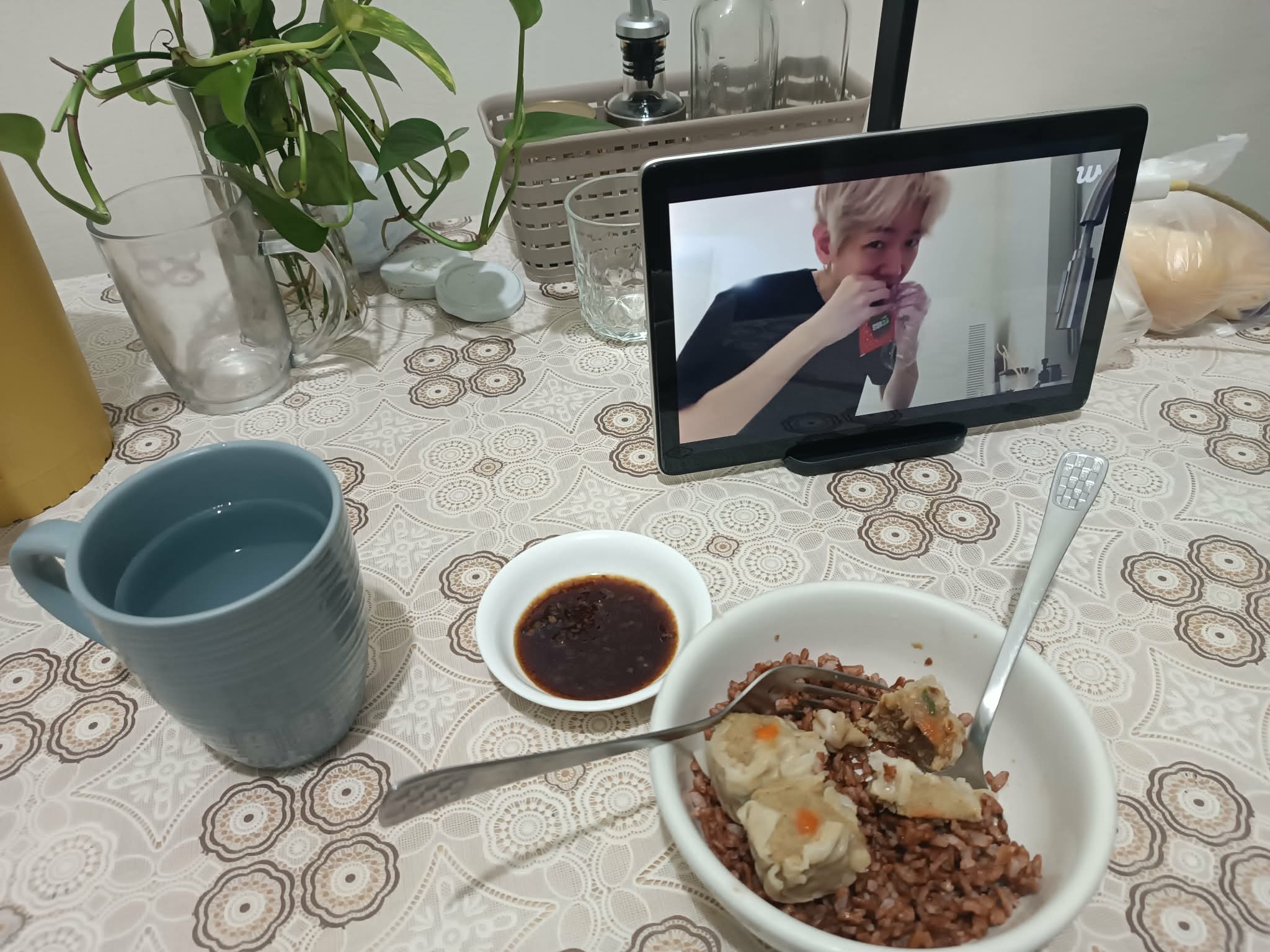 The photo was taken a few weeks ago with Baekhyun, of course, my favorite online eating buddy. Lol!