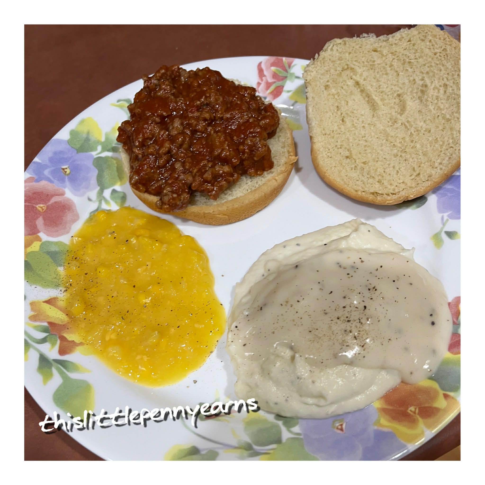 I made sloppy joes, mashed potaotes and gravy and creamed corn. You know gotta get that veggie in somehow.
