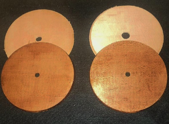 So this morning I am staining up a pair of cutouts. They will wind up as coasters, and I will either sell them for $25.00/pair, or give them to musician friends here in the Bay Area.