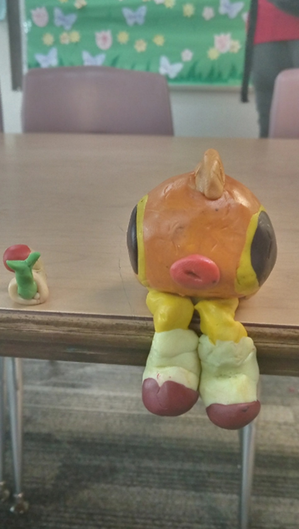 They had been working with polymer clay, and the boy sculpted what turned out to be a fish (which he named "Frank (or Fred?) the fish with socks"), and then a little pet snail ("Jerry the snail").