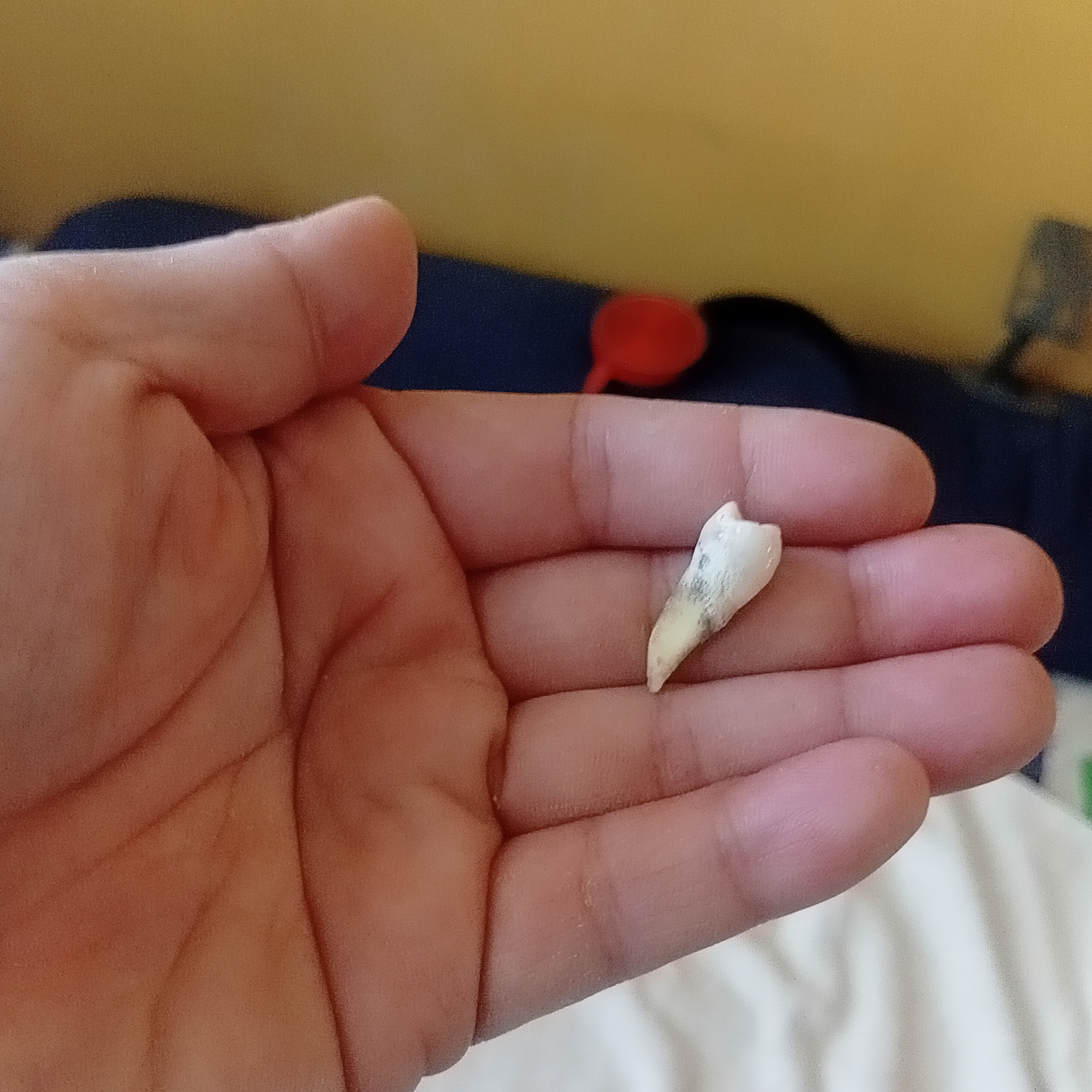 Months passed by until December of laatbyear came , finally I pulled it out myself. It felt uncomfortable and eating is difficult when this tooth was still around. Luckily it did not swell during those time. I still keep it here in my room as a remembrance to that day.