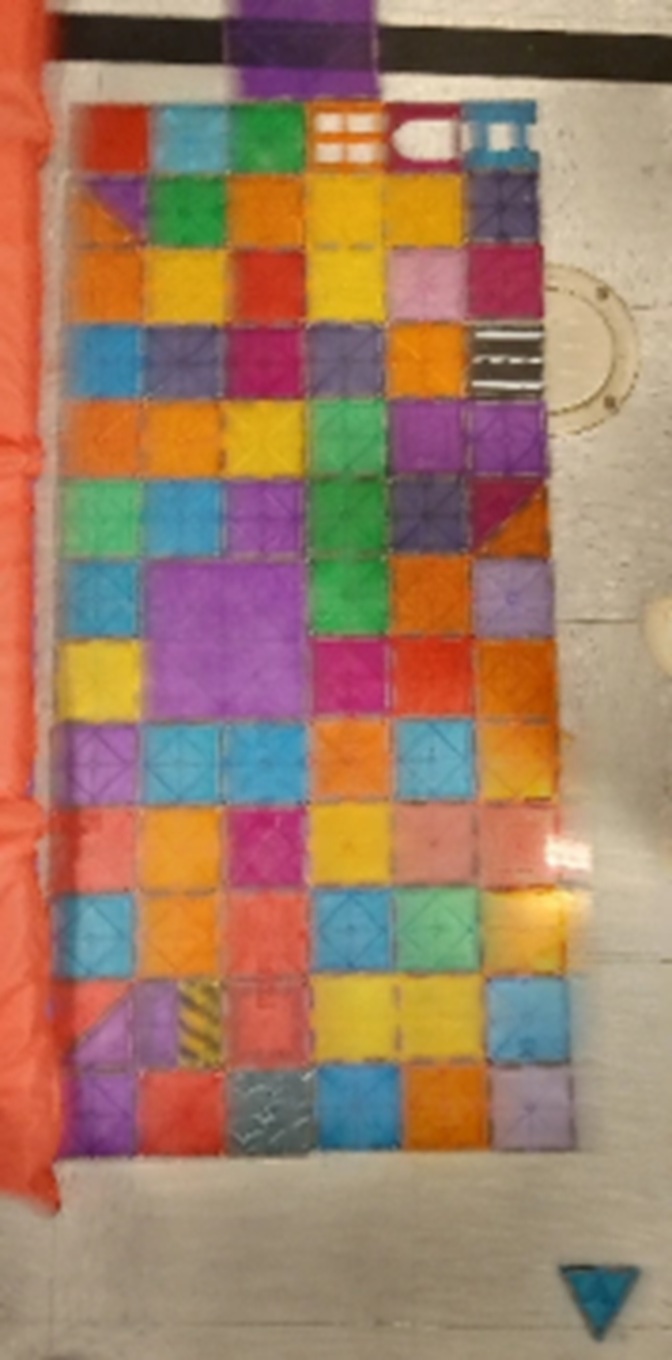 (Photo of a magnet tile creation in the Lodge--which we will no longer have to be in next week--until next time...)