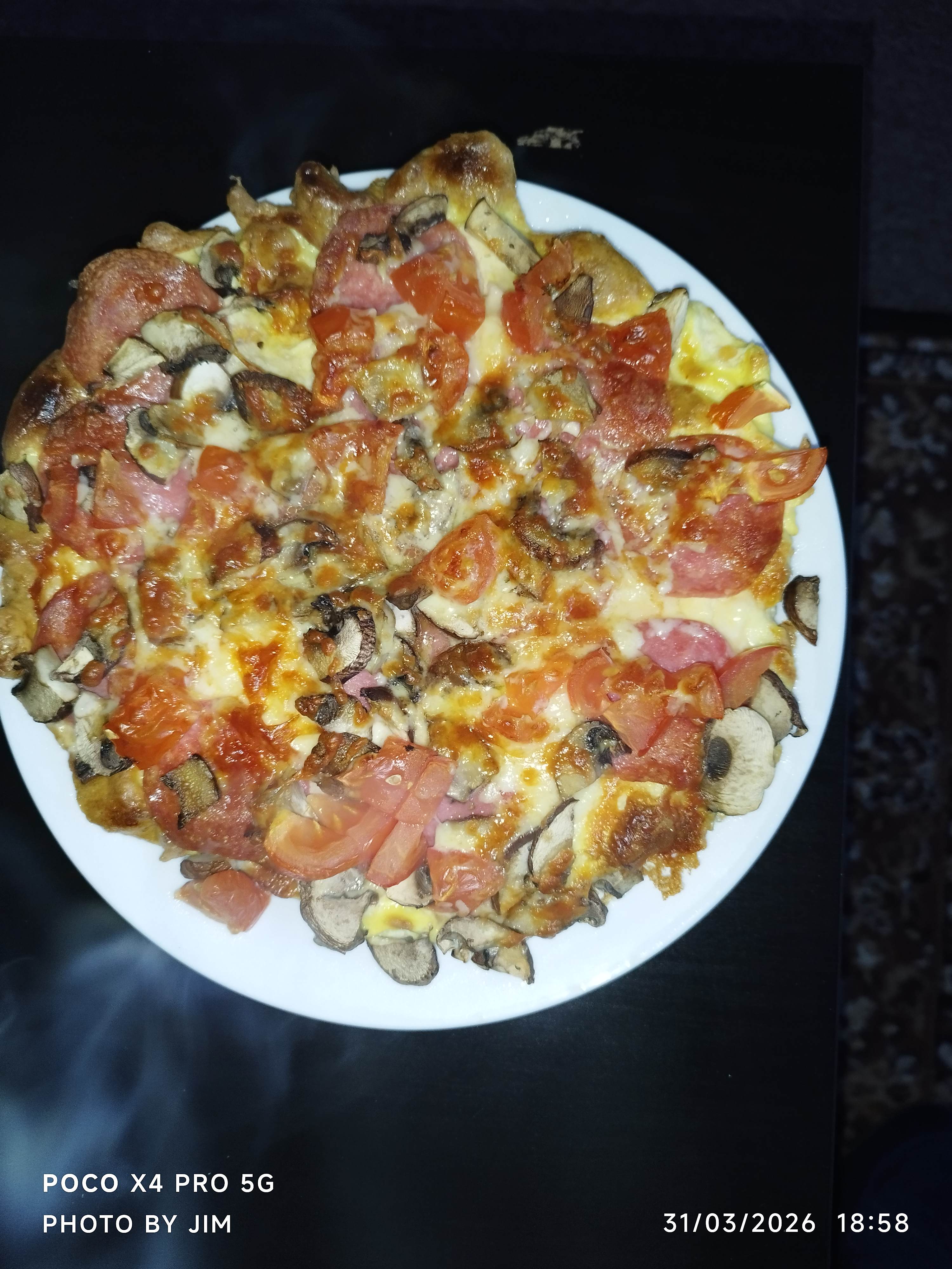 I also used Mushrooms, Cheese, Salami and Tomatoes