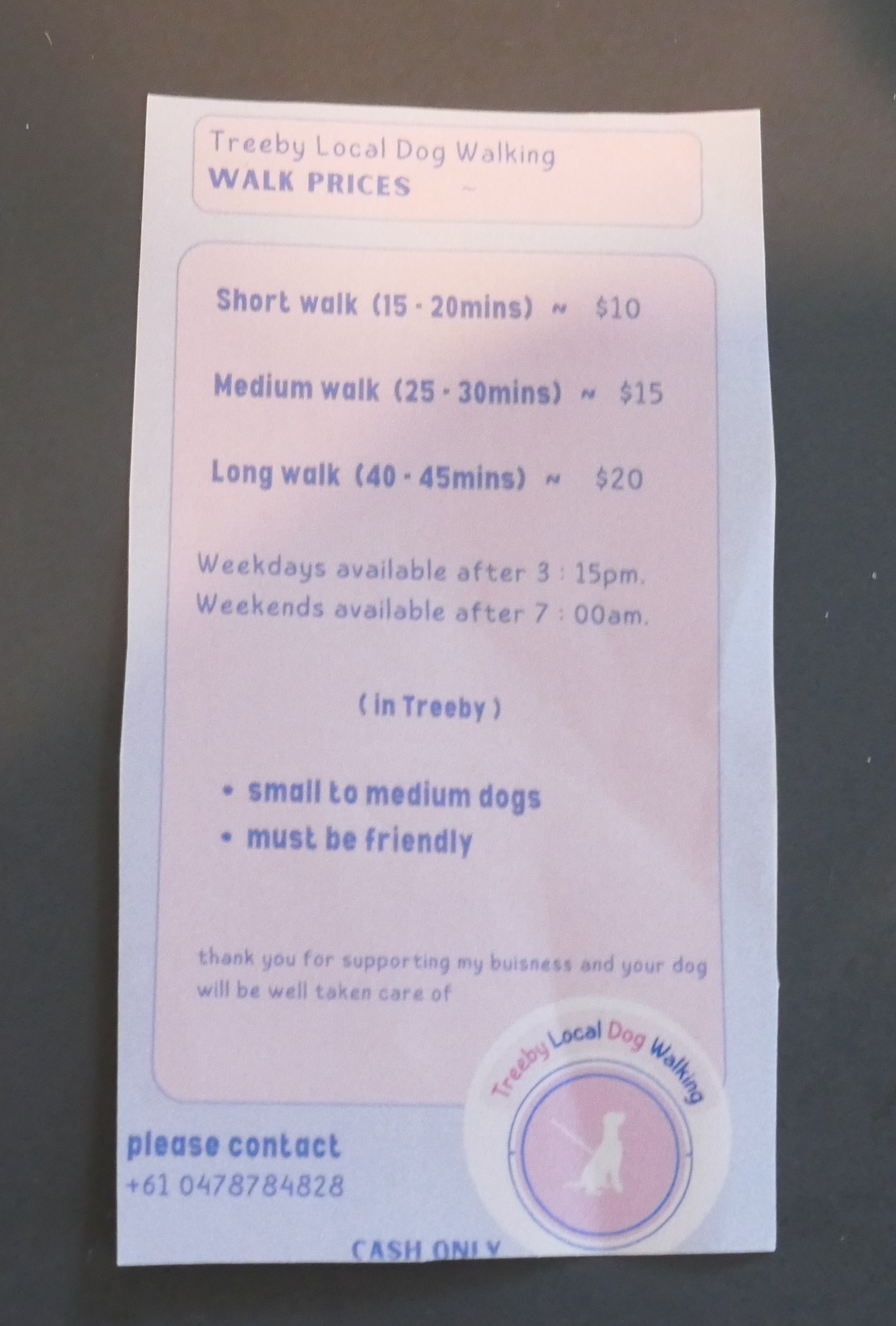 she/him/them put a lot of effort on this flyer and i like that. i joined one app for dog-walker service before but noone reached out to me so, i hope this person would get more lucky