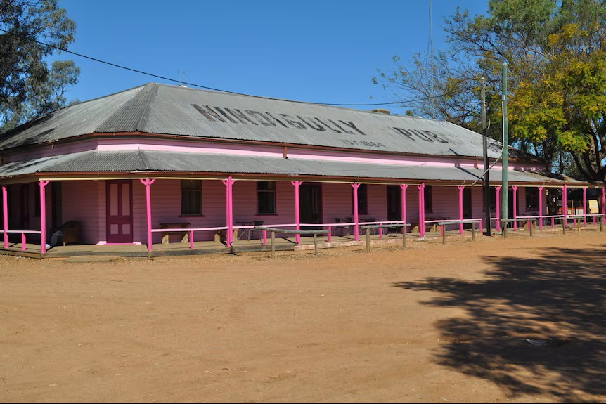 When Stephen Burns (Burnsie) bought the building in 2002, it was in a state of disrepair. Burnsie has lost two wives to cancer and the pub was painted pink in 2012 to raise money and awareness for breast cancer. The annual Nindigully Pig Races attracts thousands of visitors each year and has raised hundreds of thousands of dollars for the Royal Flying Doctor Service.
