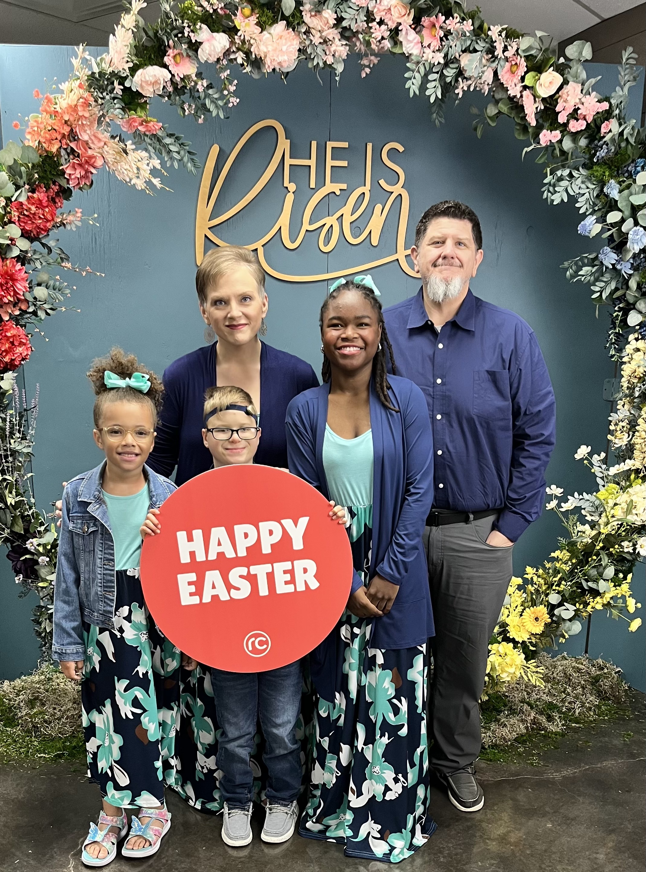 But enough of my whining. I hope you all have enjoyed your Easter, whether you celebrate the Resurrection or just spend time with your family and share a nice lunch. I have included a picture my sister sent of her and her family at their church this morning.