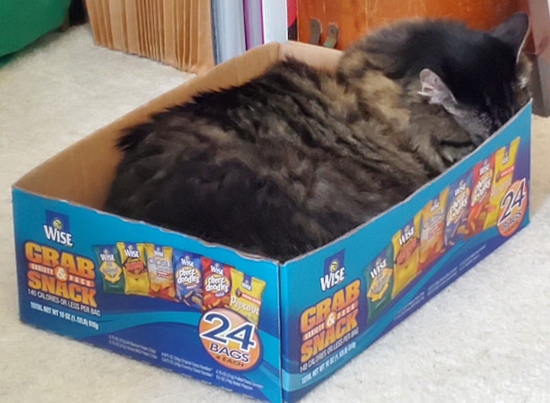 I know y'all dont wanna see my poofy feet and I don't want to show them, so here's a photo of my cat sleeping in a box with her nose tucked in.