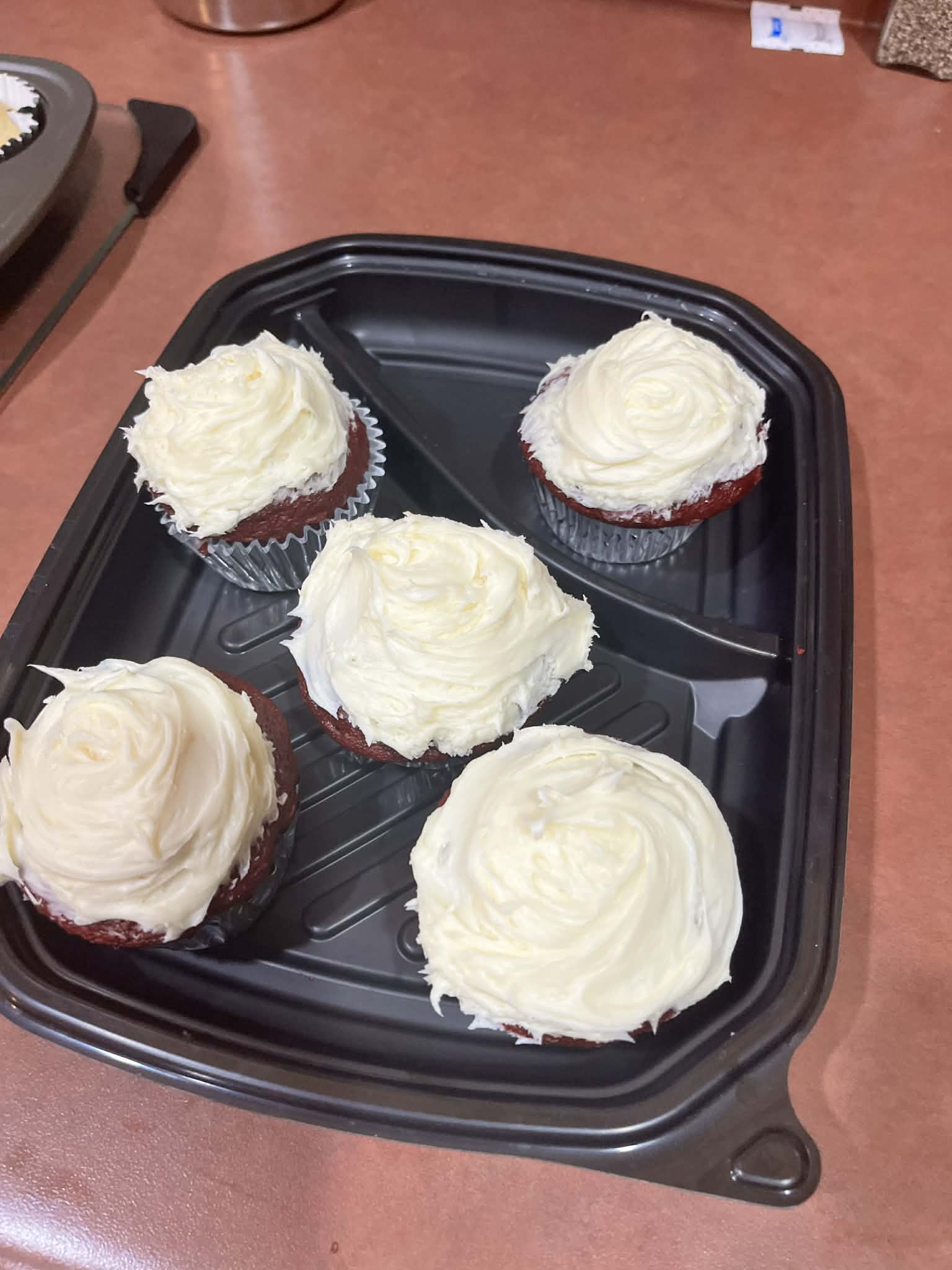 I have finished up in the kitchen for the night. I frosted five cupcakes for she child to take to school tomorrow morning.