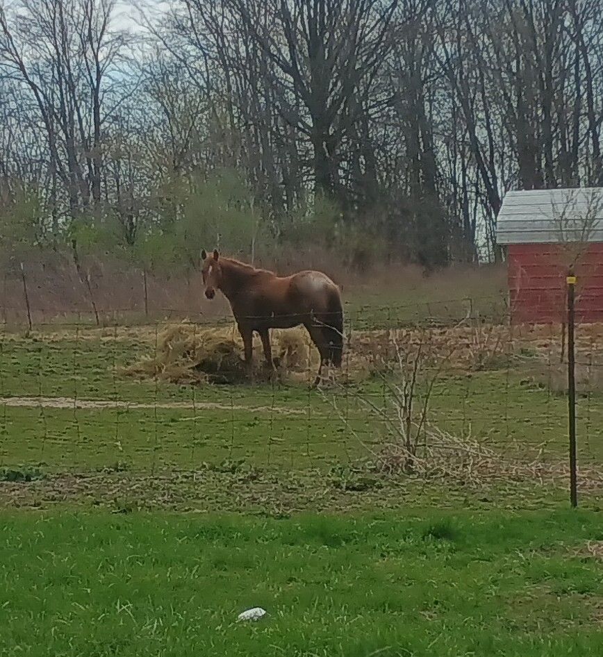 I am tired of typing. Bad pony horse. That is the bale of hay that he tore up leaning over the fence. I had to fork some of it off to get it loose from the spear. Then use my big badonkadonk to finish getting it loose