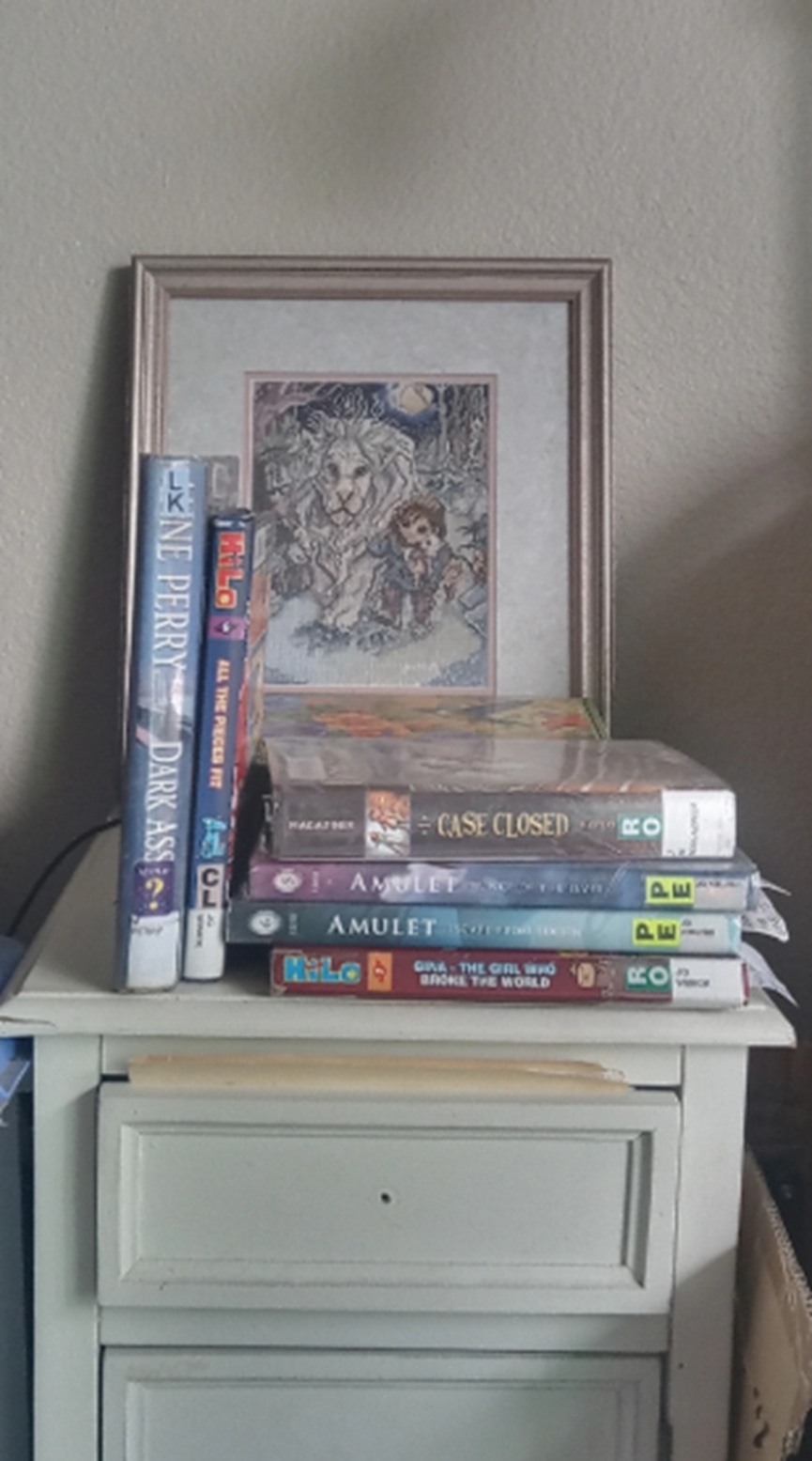 ?!? Okay, then. I still want to return the books ASAP. I started the book that is on the bottom of the pile.