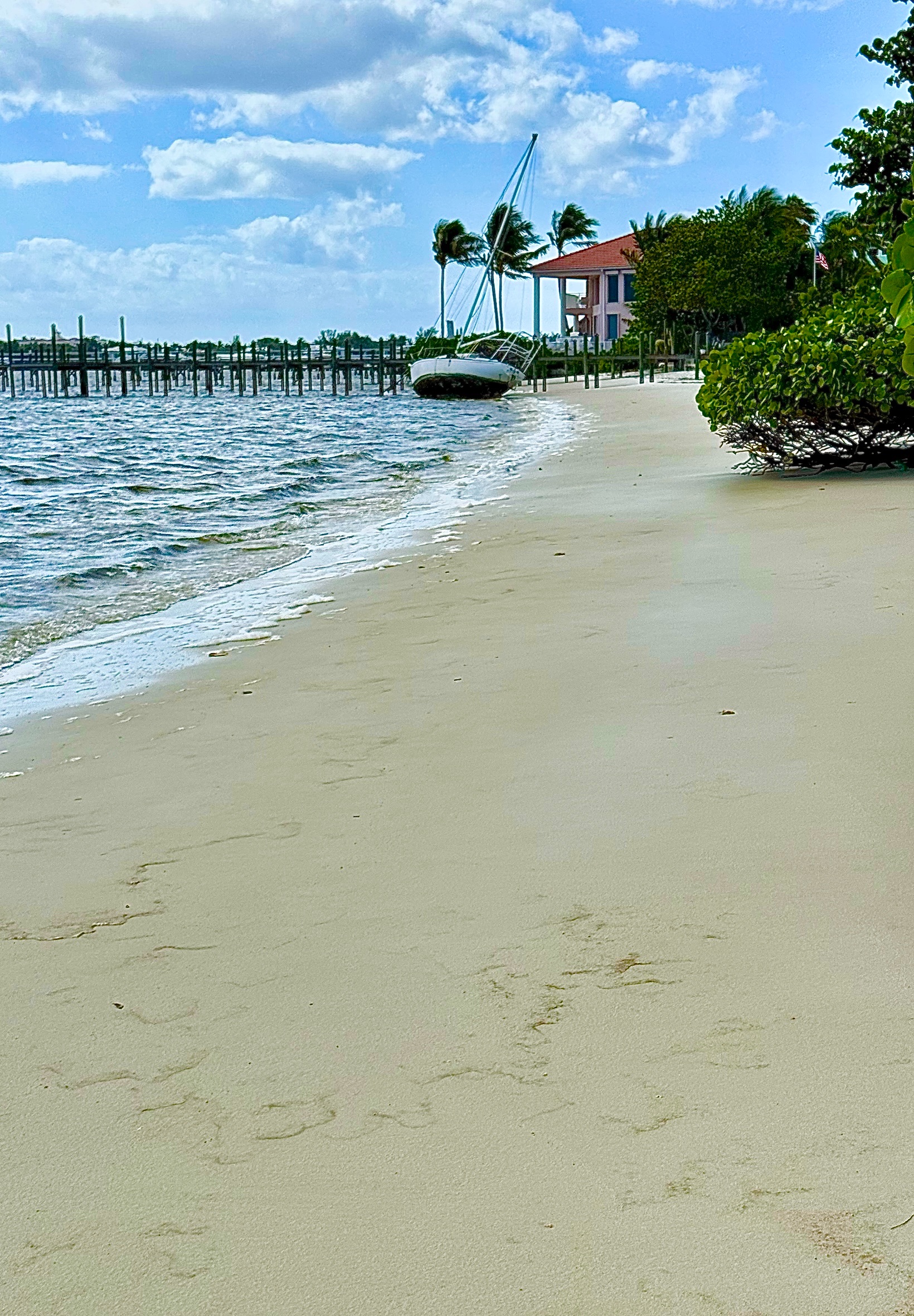 I just knew it! I saw the second sailboat I had seen drifting during the storm we had recently. It washed ashore just like the one at our condo and hasn’t been removed, yet, either!