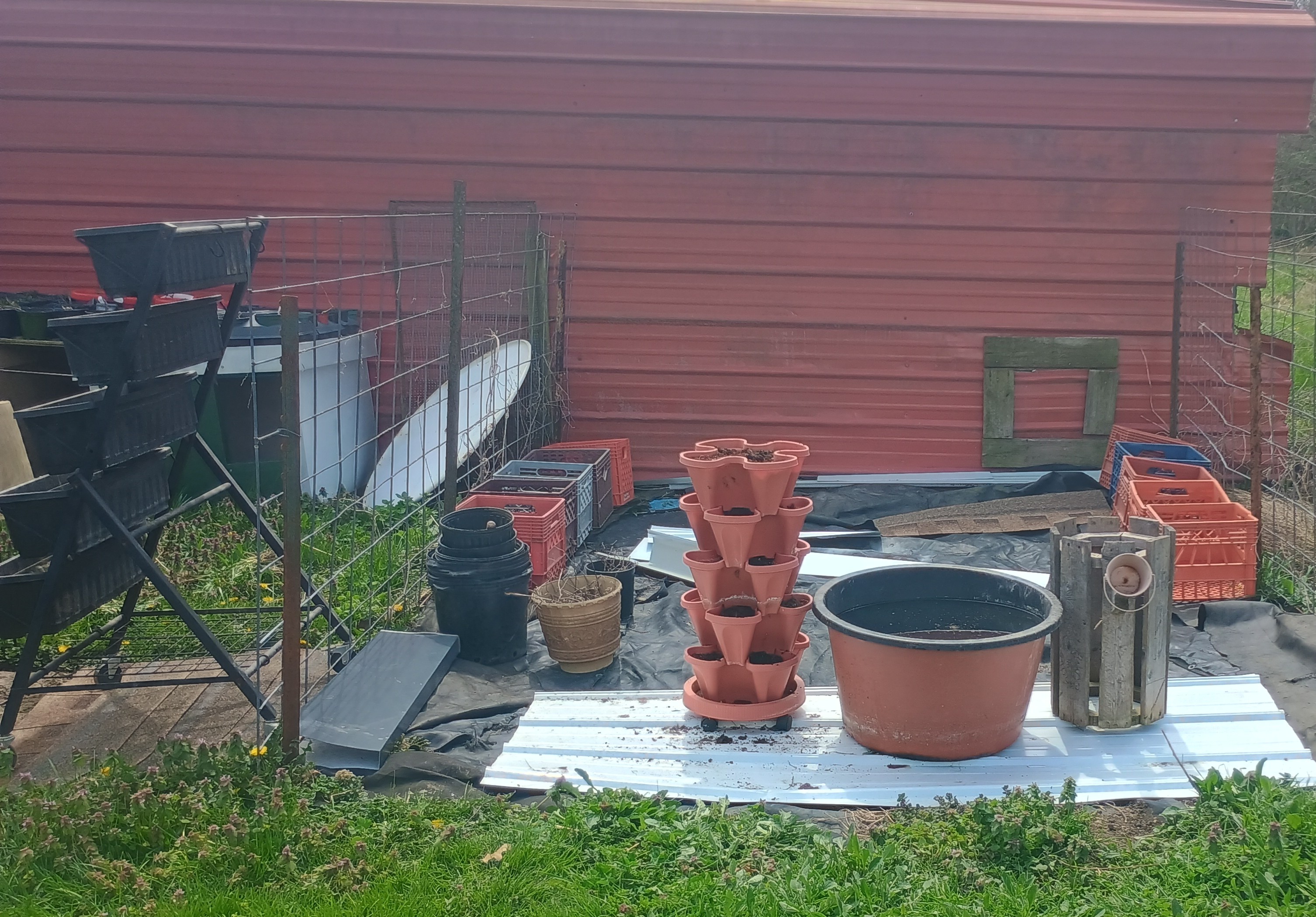 I also got the scrap pile finished today. The white piece of metal under the pond is from the pile. That will keep the weeds away.