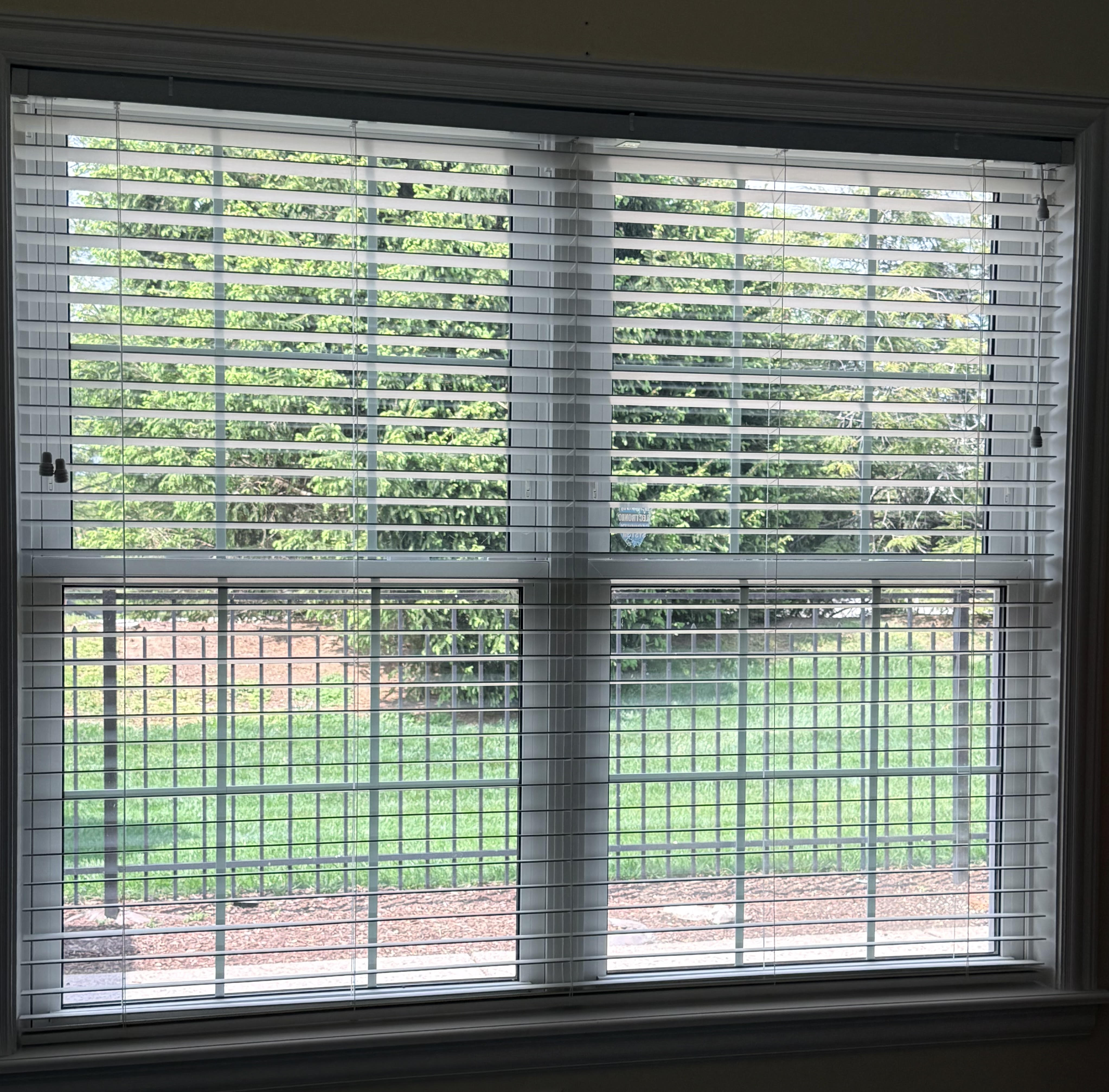 Trees in our yard is what I see from my bedroom window. I can hear the birds chirping in the morning.