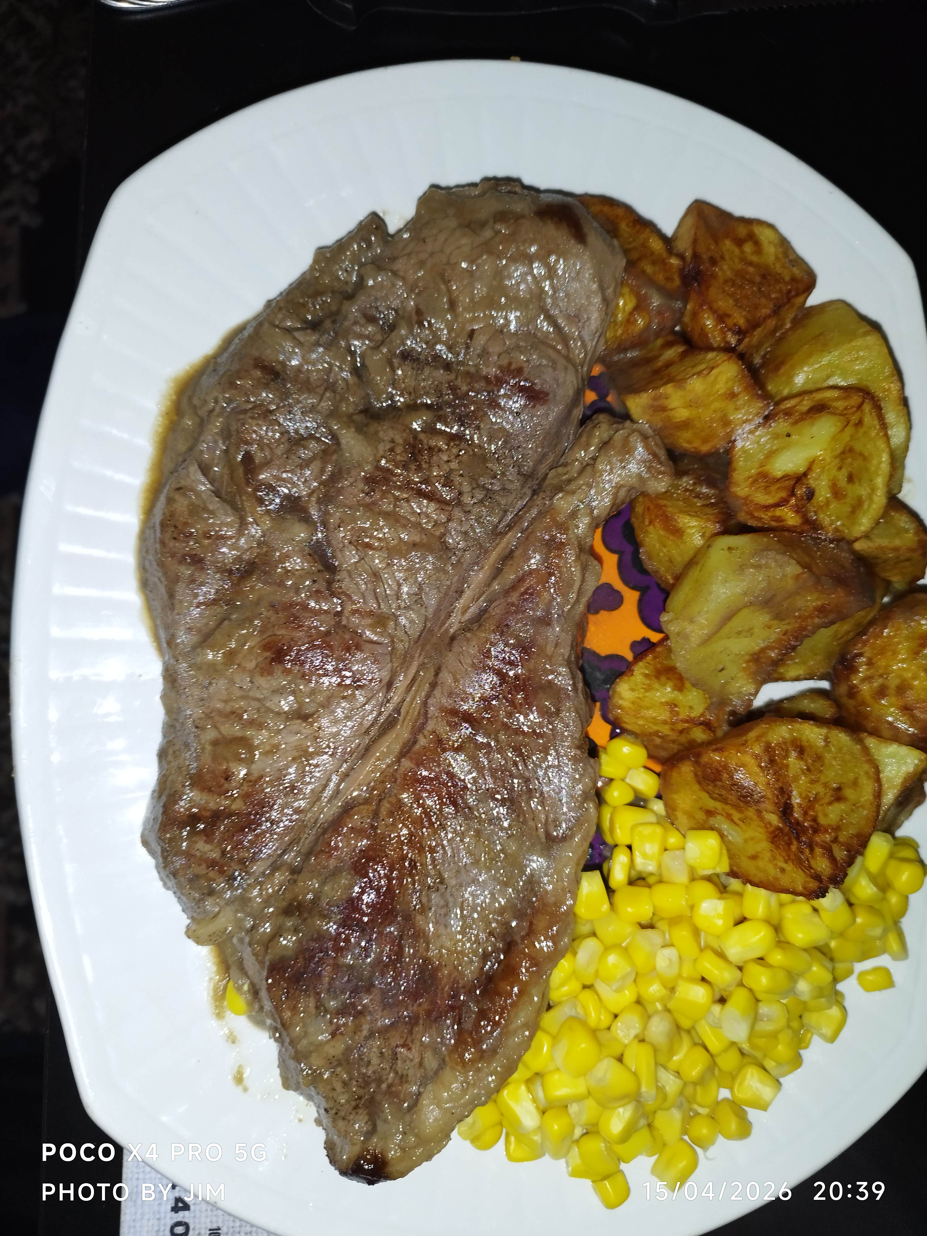The steak and potatoes look great. I haven't had steak in....forever lol