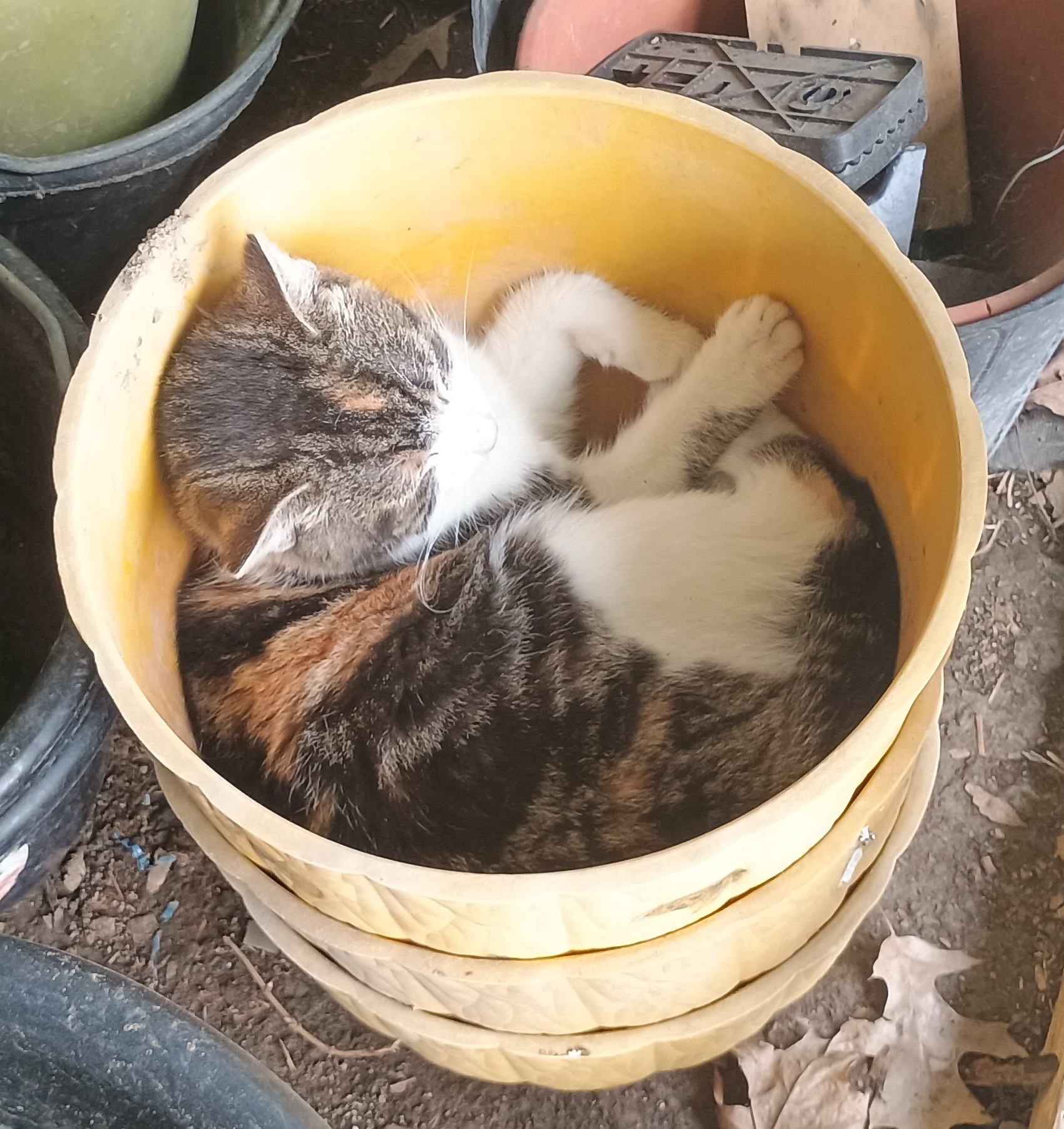 I finally had my phone with me when Jessica kitty was in the pot. She was very relaxed.