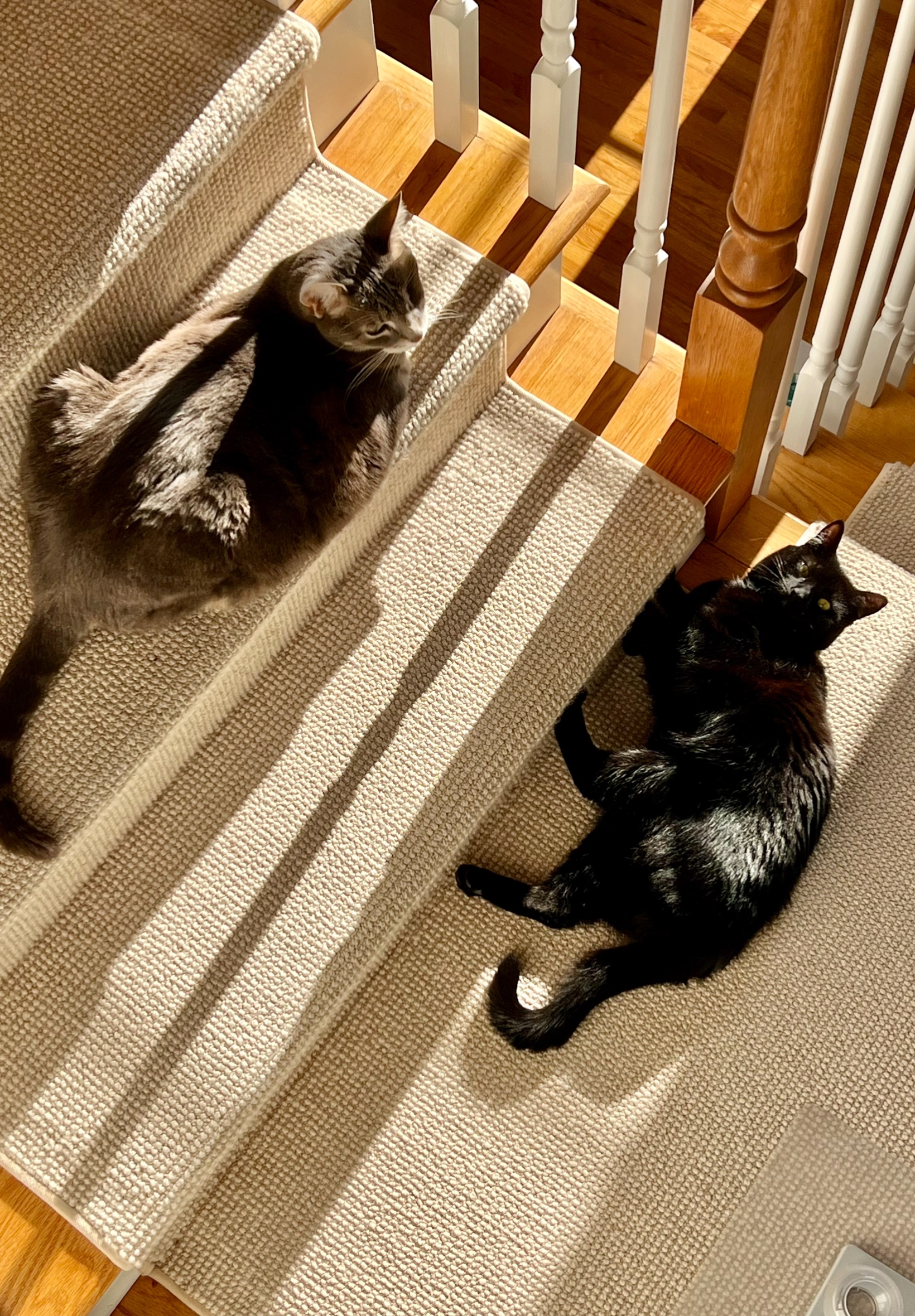 Don’t you just love the photo of my two grandkitties each worshiping the sunshine first thing in the morning?