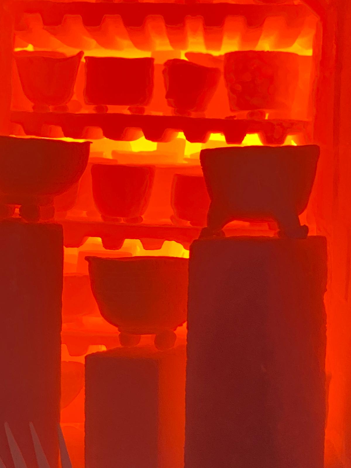 The target was 360 vessels. All the pots made were air dried and then bisque fired in batches in an electric kiln (basically like a thick-walled electric oven) at about 800°C (about 1500°F) to make them harder and more durable for transport.
