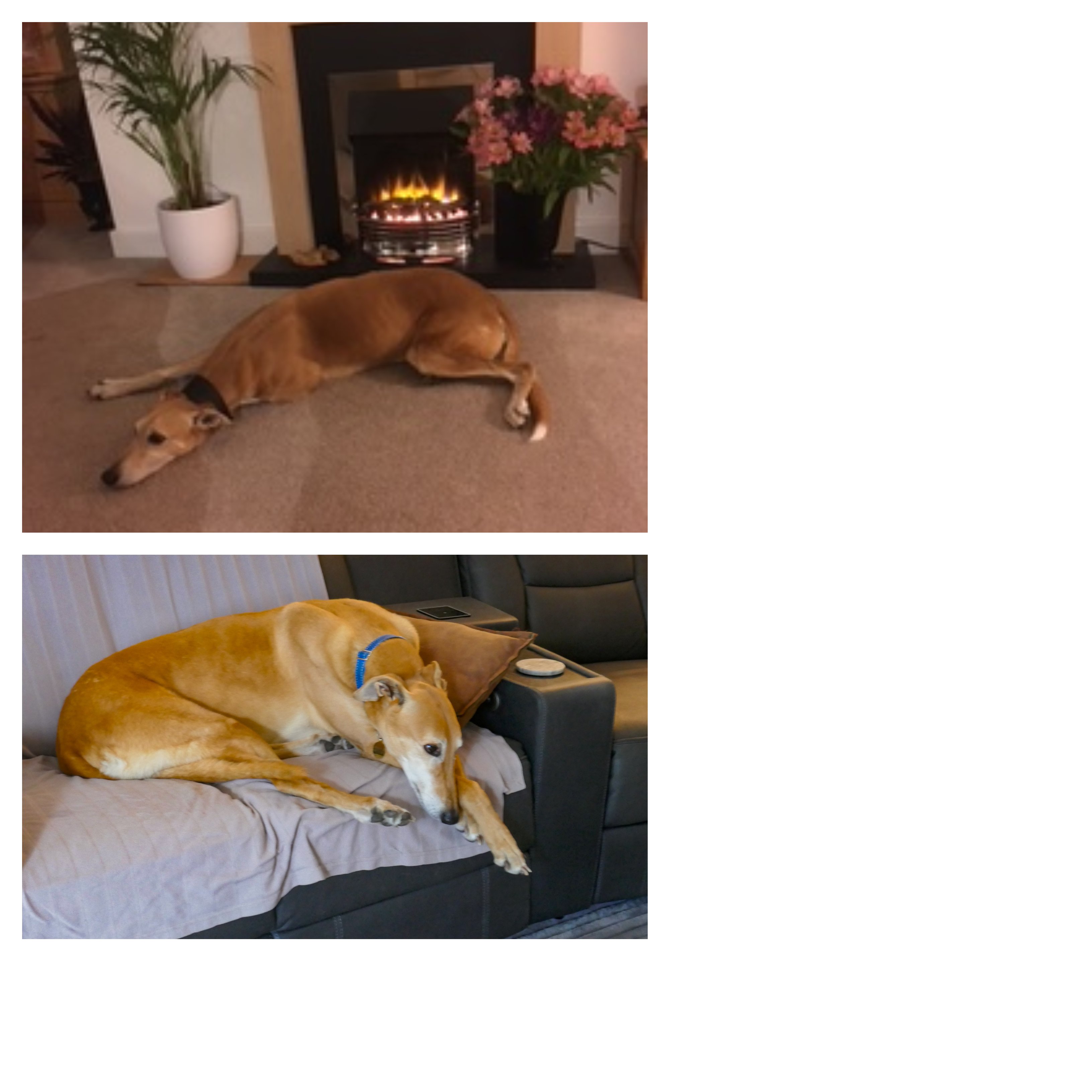 My friend sent me two photos of their lurcher and I’ve put one of them in the collage along with one of Jensen. They’re quite alike, aren’t they?