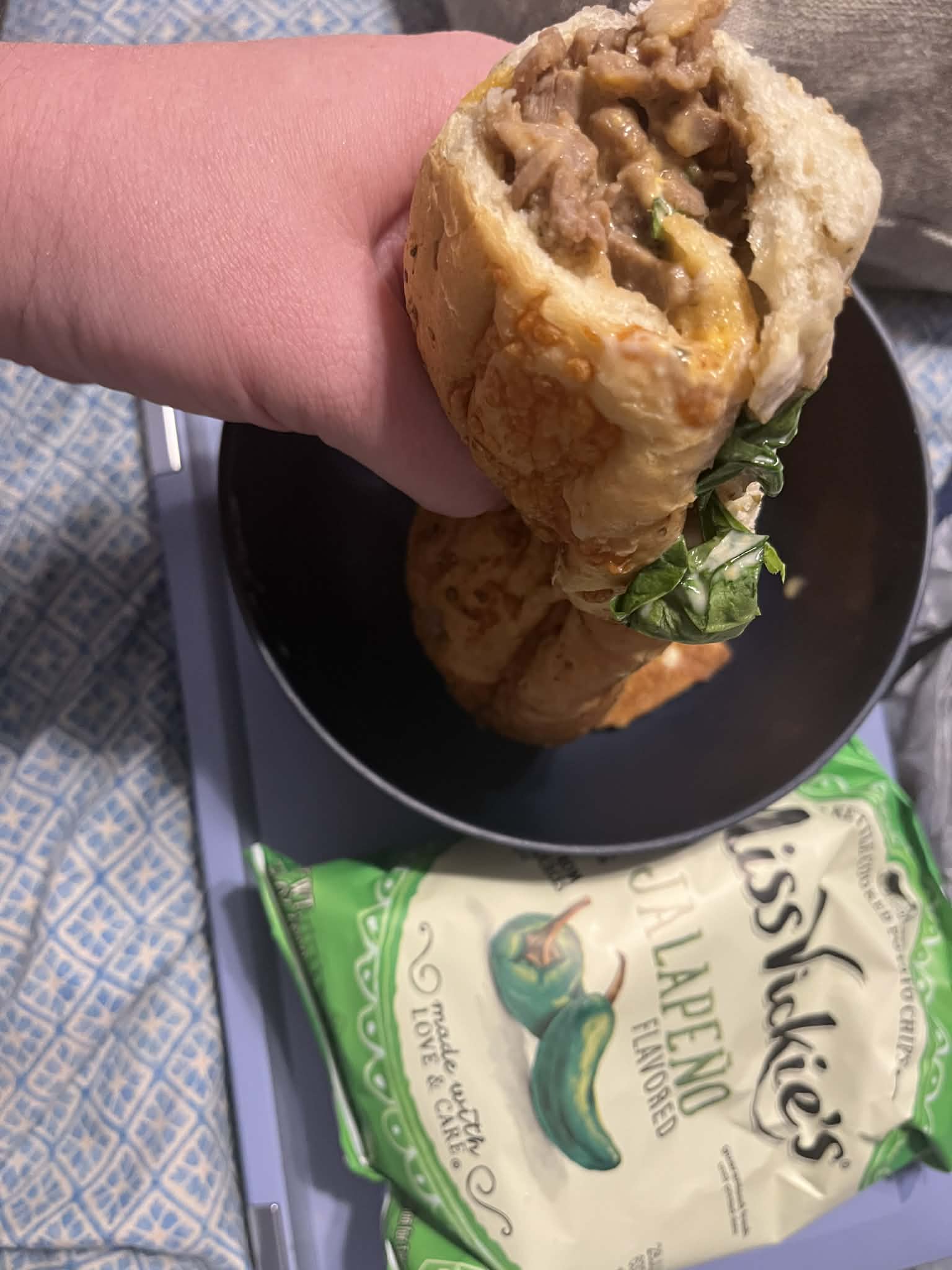 I had the garlic steak footlong on italian herbs and cheese. Steak, cheese sauce, garlic aioli, spinach and tomatos.