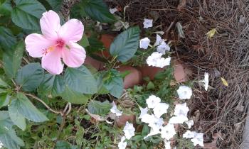 I have hibiscus of different colours planted in pots in my balcony. There is a red hibiscus plant. When the flowers grow in groups or clusters they look lovely. The only pity is that they stay only for 2 days after blossoming.