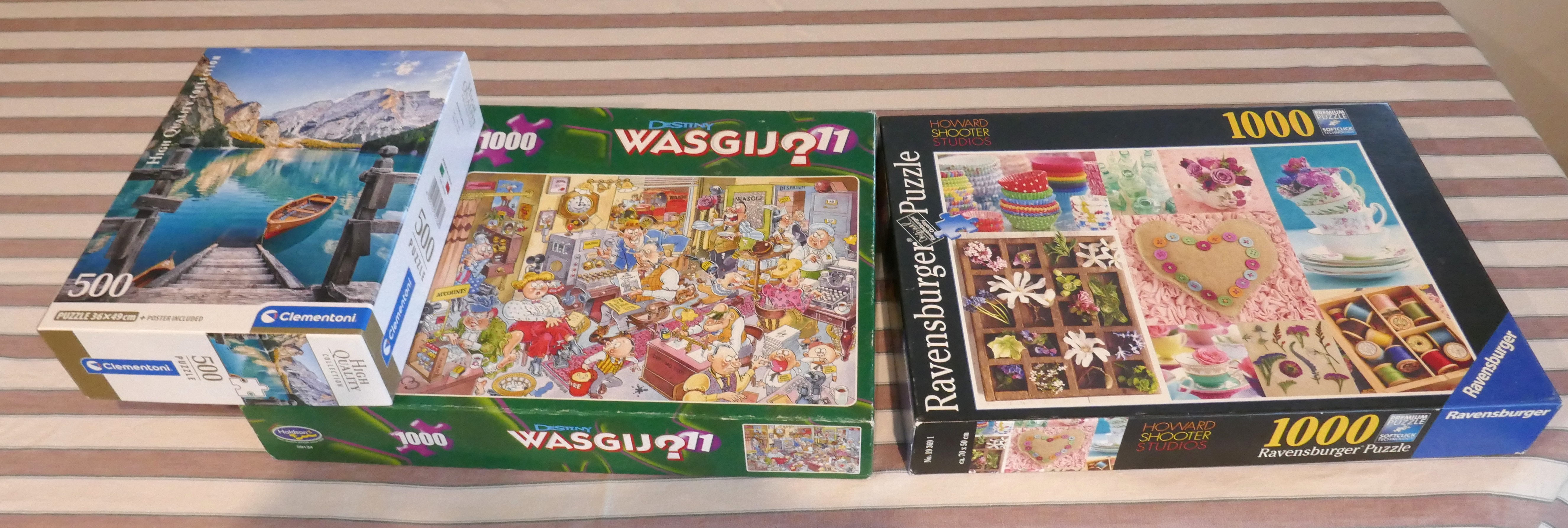 The one on the right looks relatively easy with lots of different colours and objects, which makes me think it won’t be too much of a problem. The one on the left might be a bit trickier but it’s only 500 pieces. I won’t start any today but maybe in a day or two I’ll tackle the one on the right first.