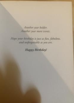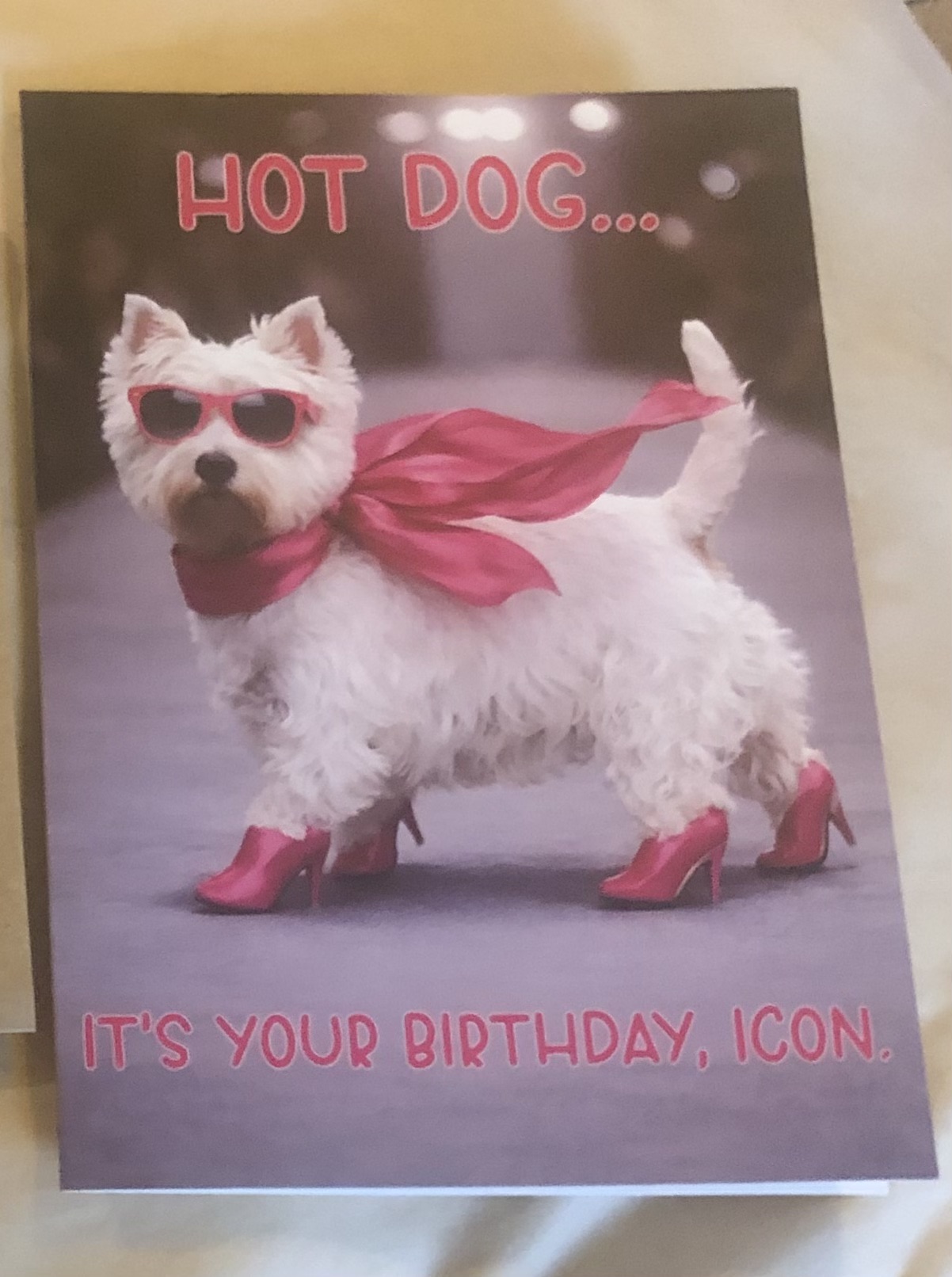 I got some free cards to review, and I’m giving this birthday card to my best friend for her birthday in May. I was trying to think if I give serious cards or funny greeting cards more. With my dad, he prefers the humorous cards, so I usually look for a hilarious one for him. Lately, maybe because he’s getting older, I get him a funny one AND a serious card.