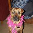 I got a picture of my dog wearing one of those costume feather scarfs or whatever. lol