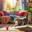 I described Oliver, my black, grey, and white striped cat and asked the AI Photo generator to create a picture of a fat cat chasing a laser.